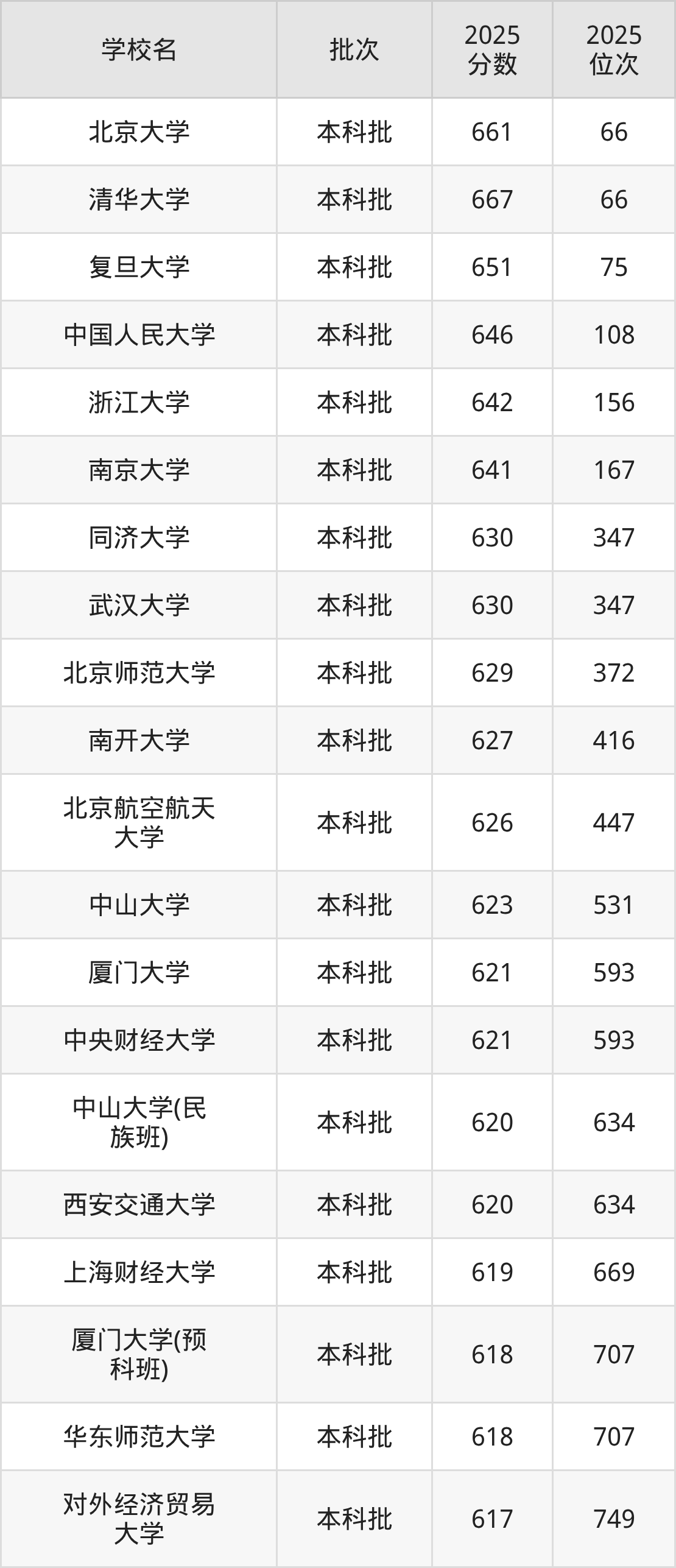 由于高考录取分数线历年波动较大,因此本文以该分数对应的位次排名为大家整理能上的大学名单。
