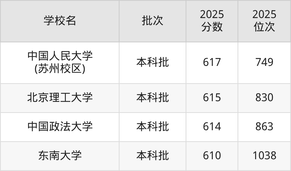 2025年重庆高考历史类622分(532名~559名)录取位次低于该区间(较稳妥)的有厦门大学(593名)、中央财经大学(593名)等;录取位次高于该区间(可冲)的有中山大学(531名)、北京航空航天大学(447名)等。