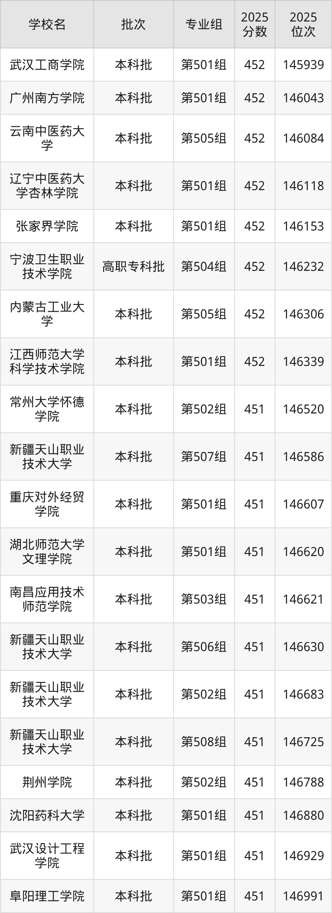 2025年江西高考历史类451分(70088名~70730名)能上的大学有楚雄医药高等专科学校第101组、浙江安防职业技术学院第101组、湖南生物机电职业技术学院第101组、石家庄信息工程职业学院第101组等。
