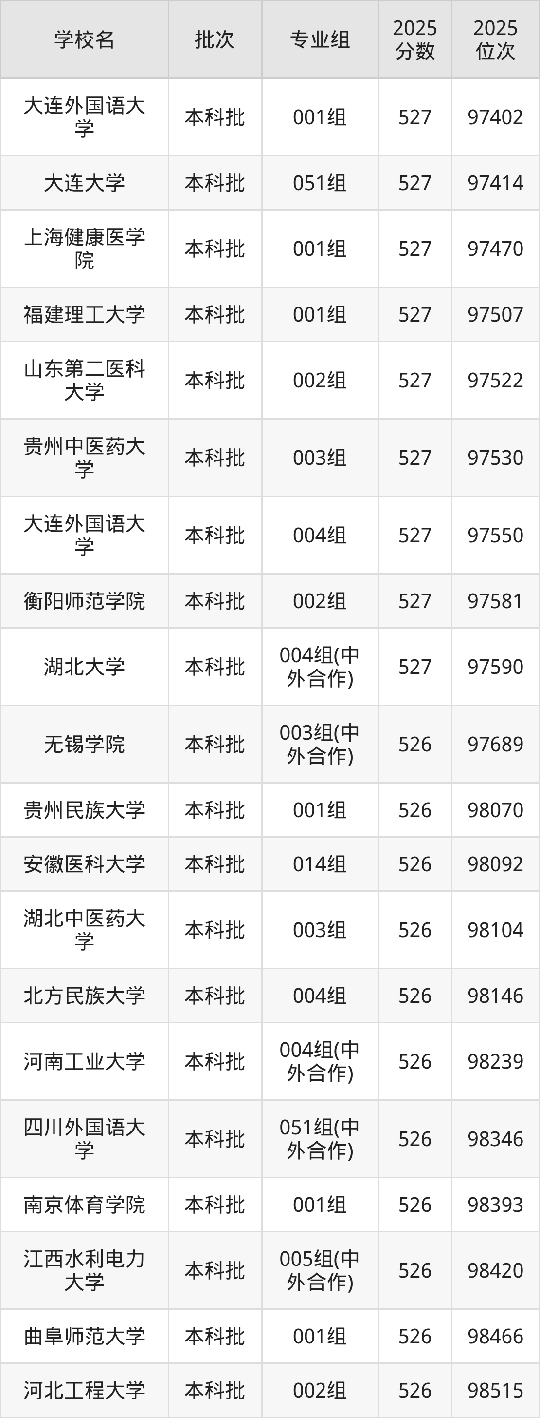 这些都是2026年高考物理类97677名~98913名考生可以报考的大学,更多学校名单如下表所示: