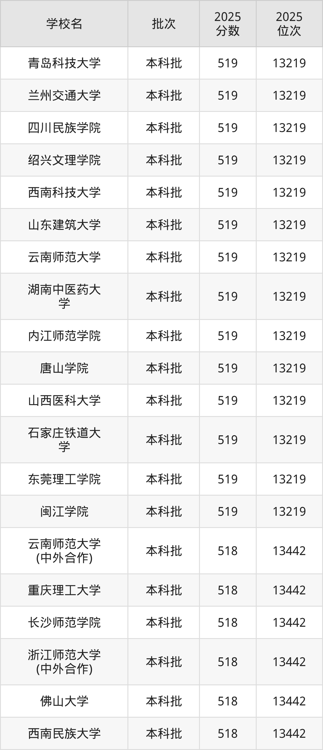 这些都是2026年高考历史类13678名~13908名考生可以报考的大学,更多学校名单如下表所示: