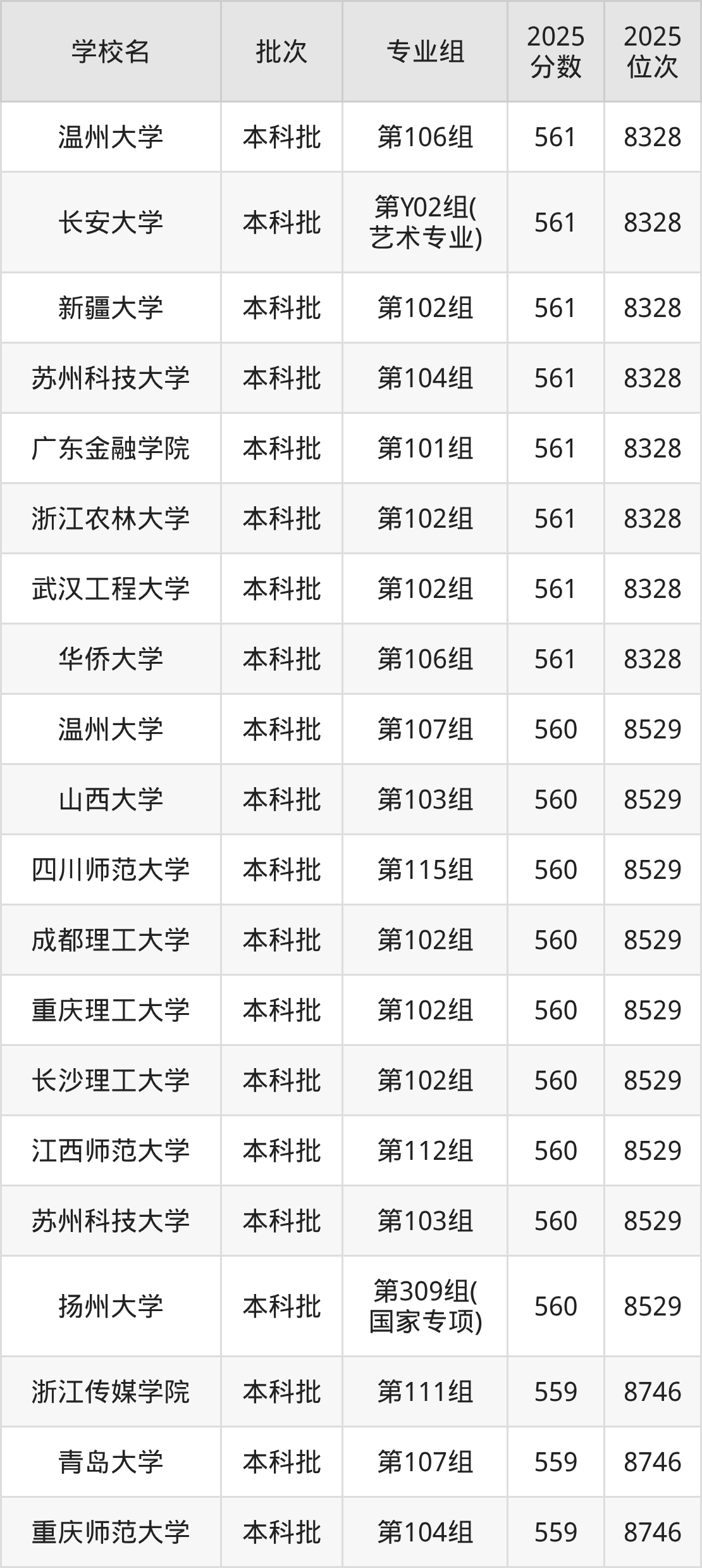 这些都是2026年高考历史类8747名~8957名考生可以报考的大学,更多学校名单如下表所示: