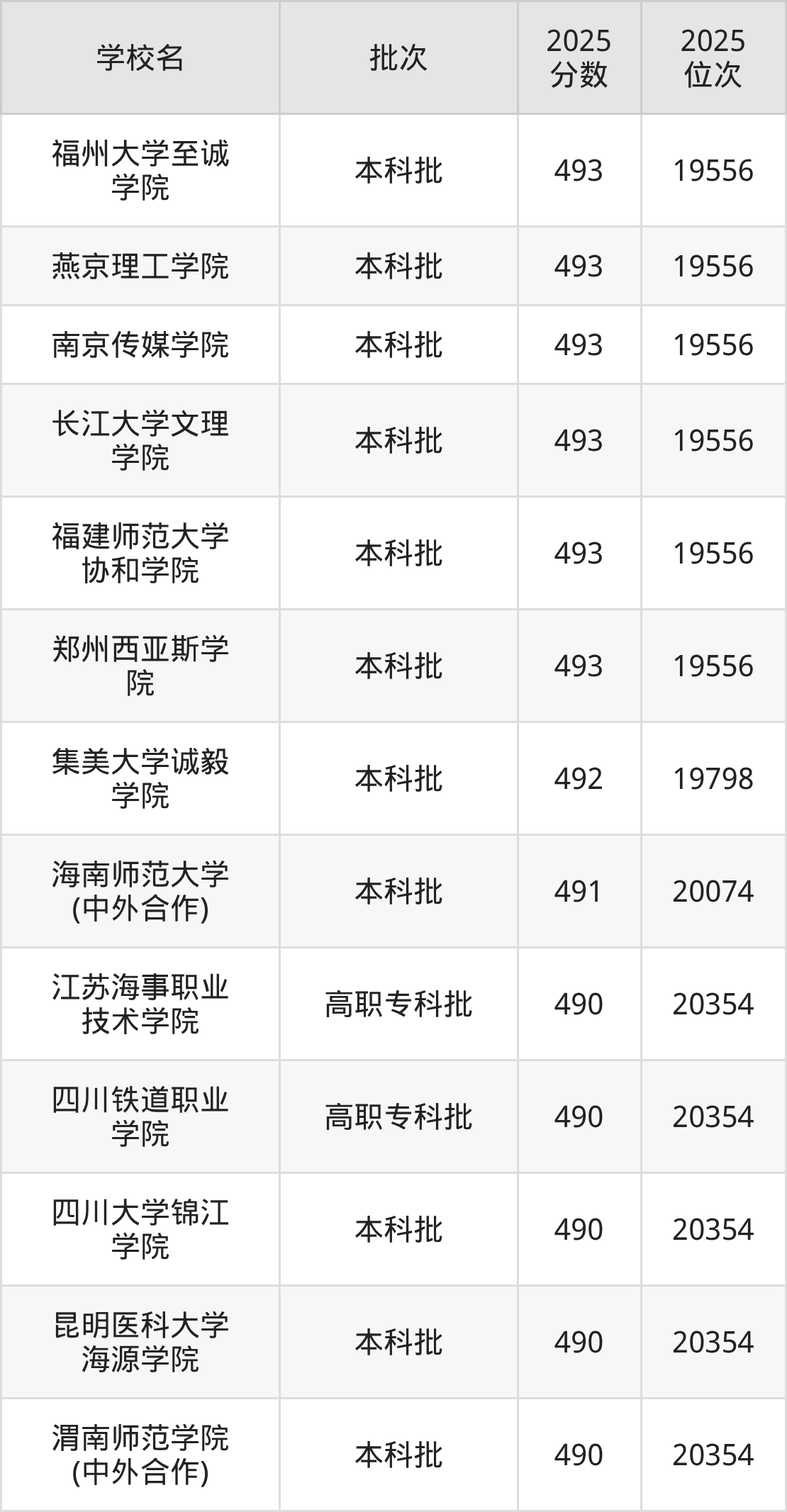 这些都是2026年高考历史类19799名~20074名考生可以报考的大学,更多学校名单如下表所示: