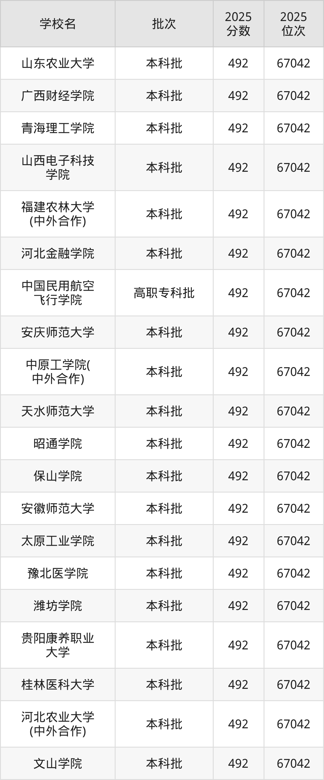 这些都是2026年高考物理类67043名~67694名考生可以报考的大学,更多学校名单如下表所示:
