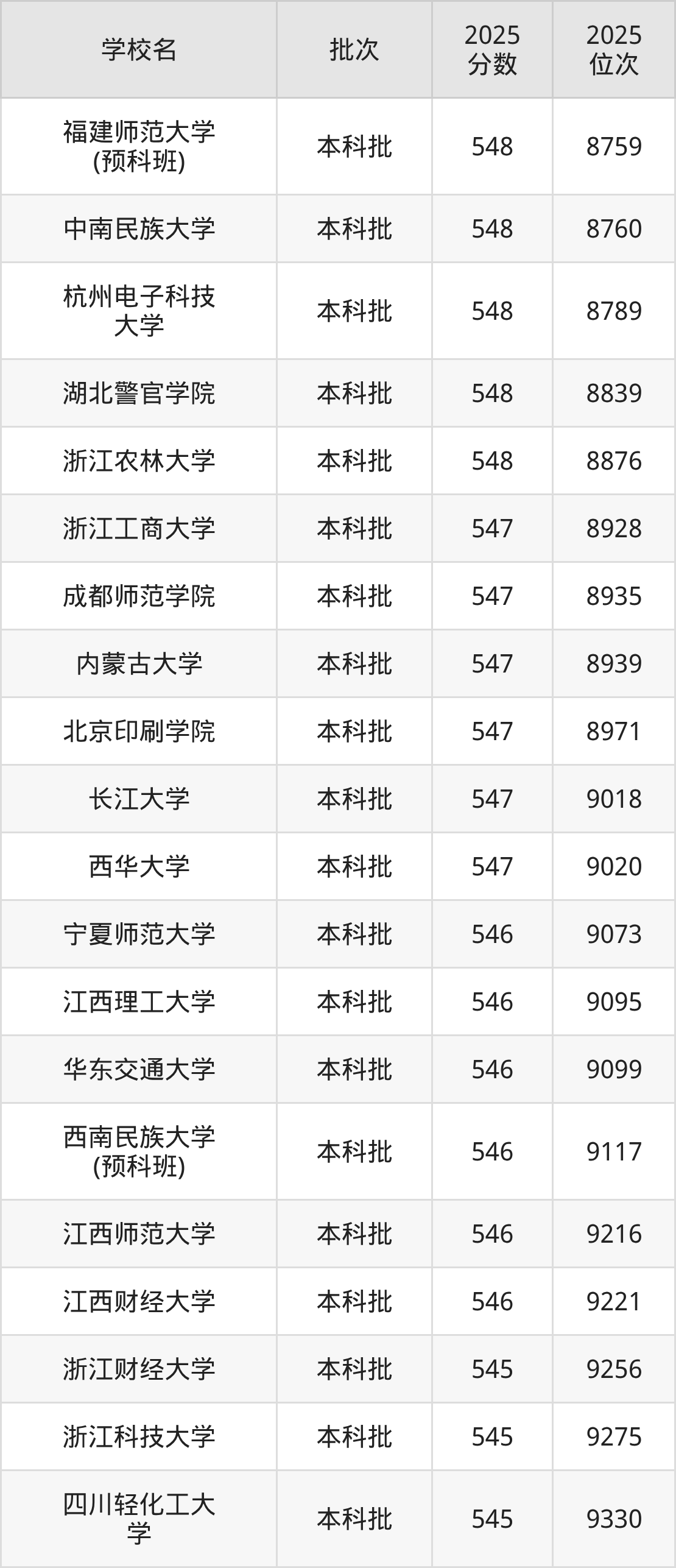 这些都是2026年高考历史类9239名~9435名考生可以报考的大学,更多学校名单如下表所示: