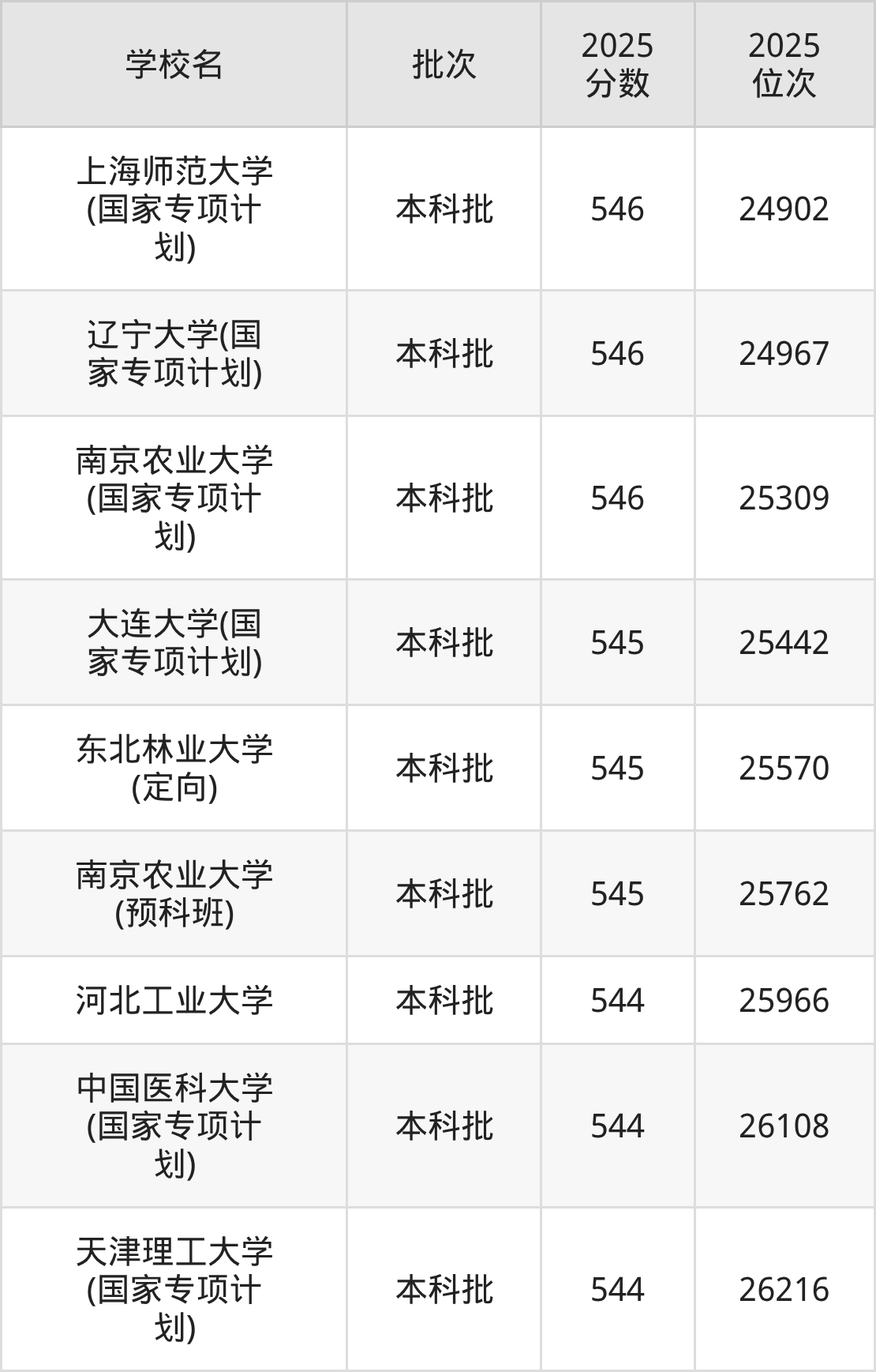 另外录取位次低于该区间(较稳妥)的有河北工业大学(25966名)、中国医科大学(国家专项计划)(26108名)等;录取位次高于该区间(可冲)的有南京农业大学(国家专项计划)(25309名)、辽宁大学(国家专项计划)(24967名)等。