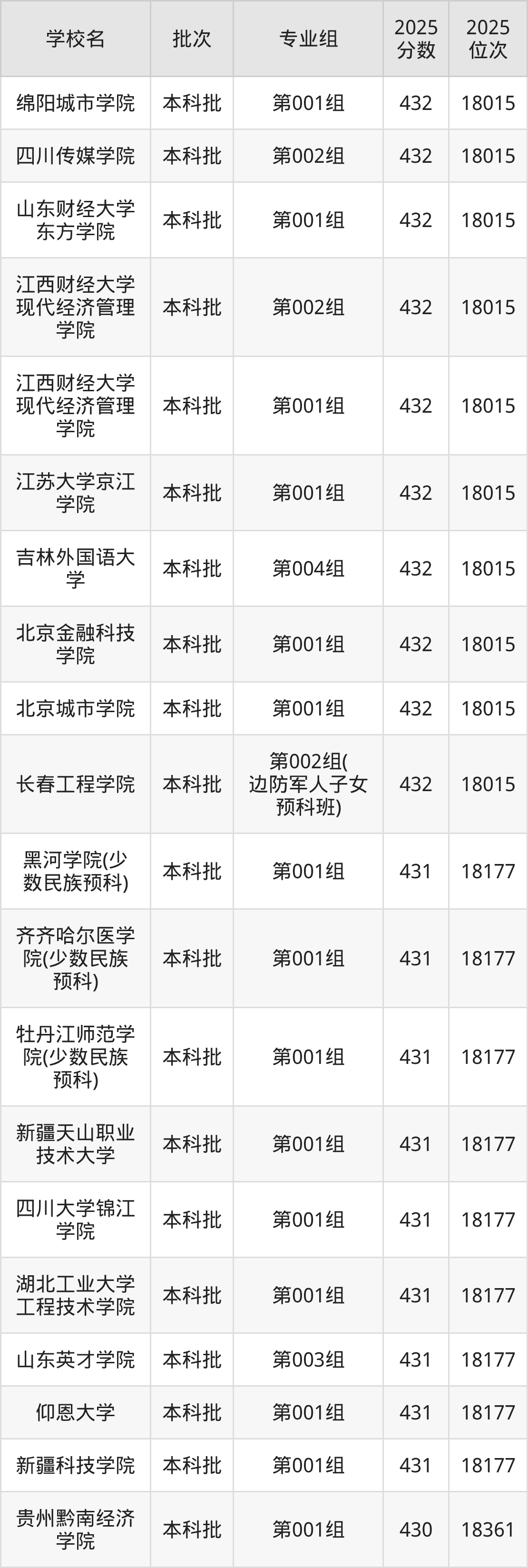 这些都是2026年高考历史类18362名~18518名考生可以报考的大学,更多学校名单如下表所示: