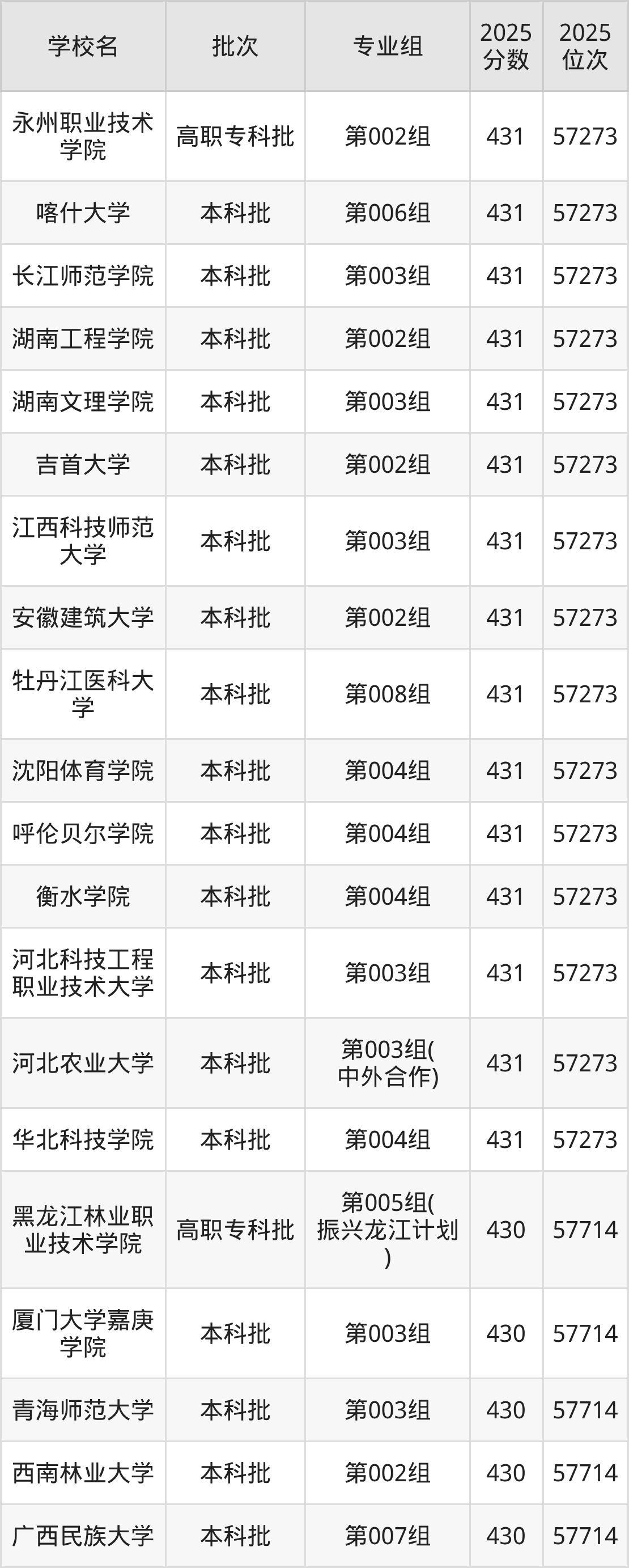 这些都是2026年高考物理类57715名~58069名考生可以报考的大学,更多学校名单如下表所示: