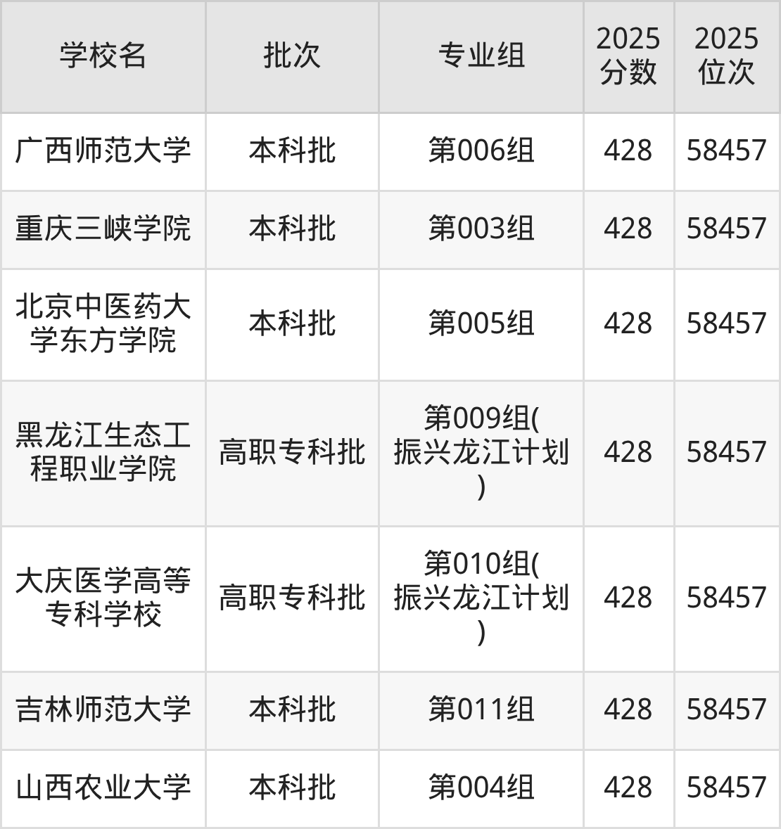 2025年黑龙江高考物理类429分(57715名~58069名)能上的大学有唐山师范学院第004组、内蒙古工业大学第006组、内蒙古民族大学第010组、阜阳师范大学第001组等。