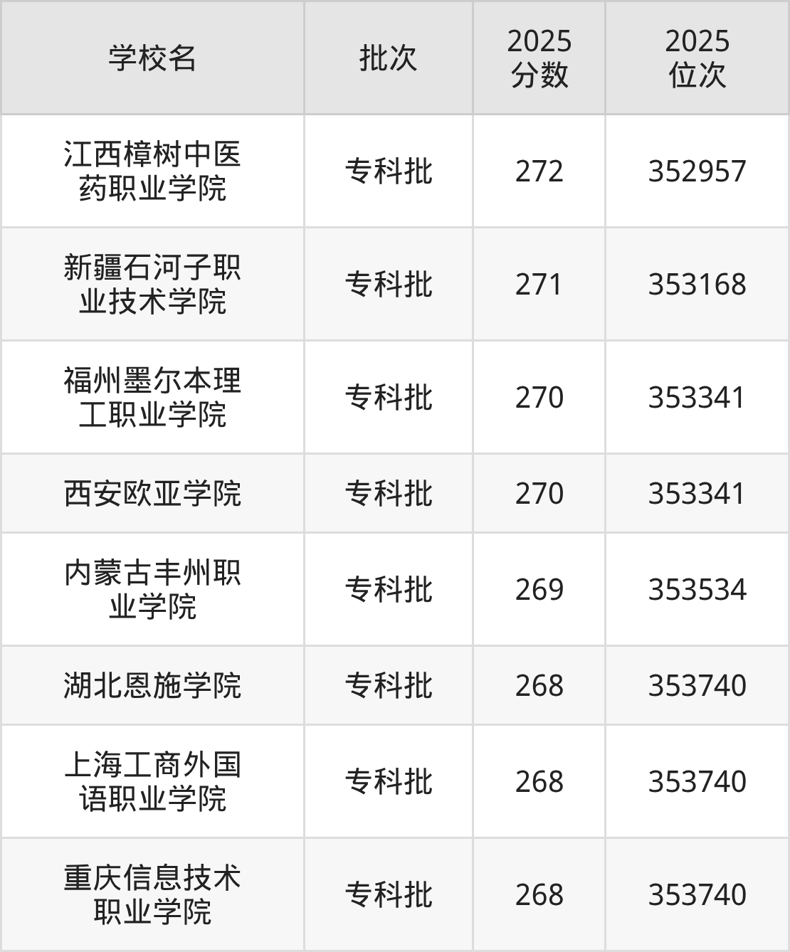 2025年河北高考物理类270分(353169名~353341名)能上的大学有福州墨尔本理工职业学院、西安欧亚学院。