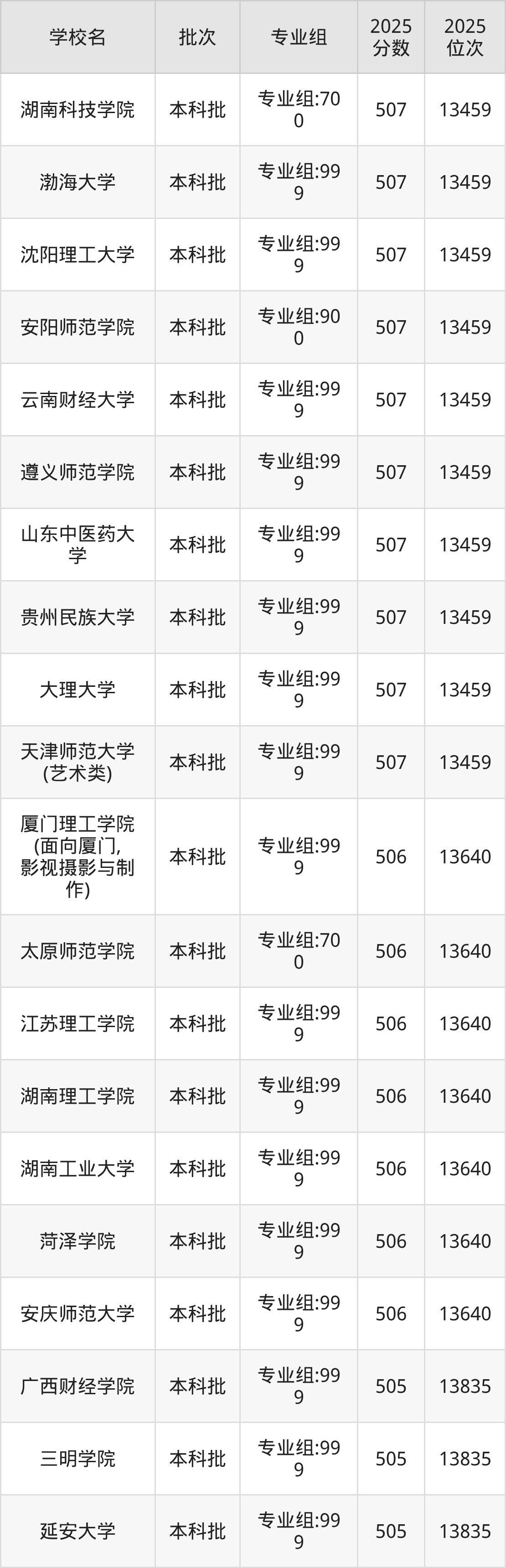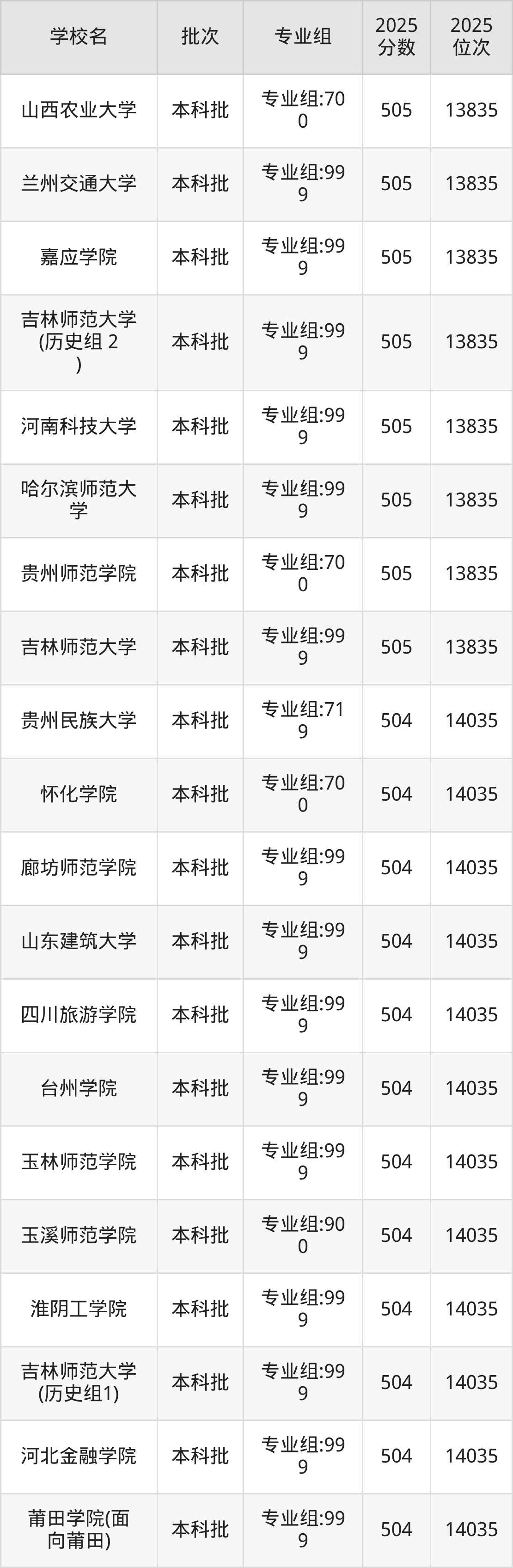 这些都是2026年高考历史类13836名~14035名考生可以报考的大学,更多学校名单如下表所示: