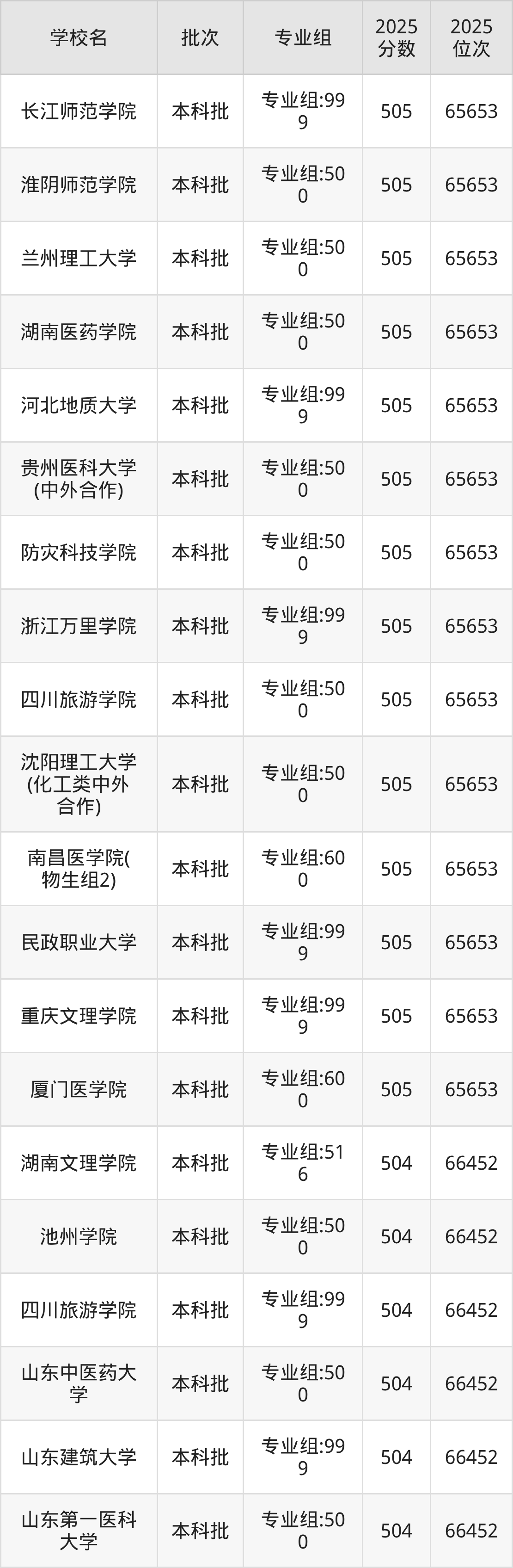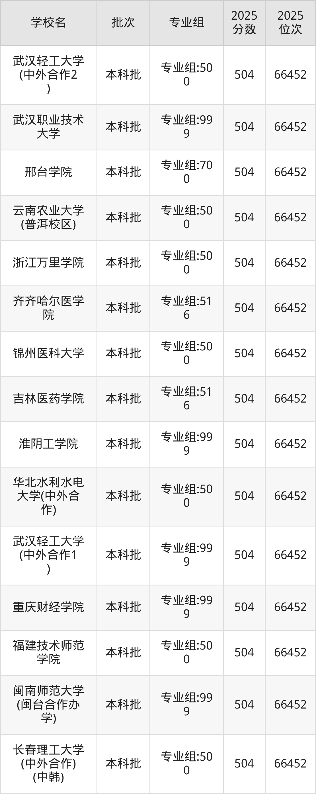 这些都是2026年高考物理类65654名~66452名考生可以报考的大学,更多学校名单如下表所示: