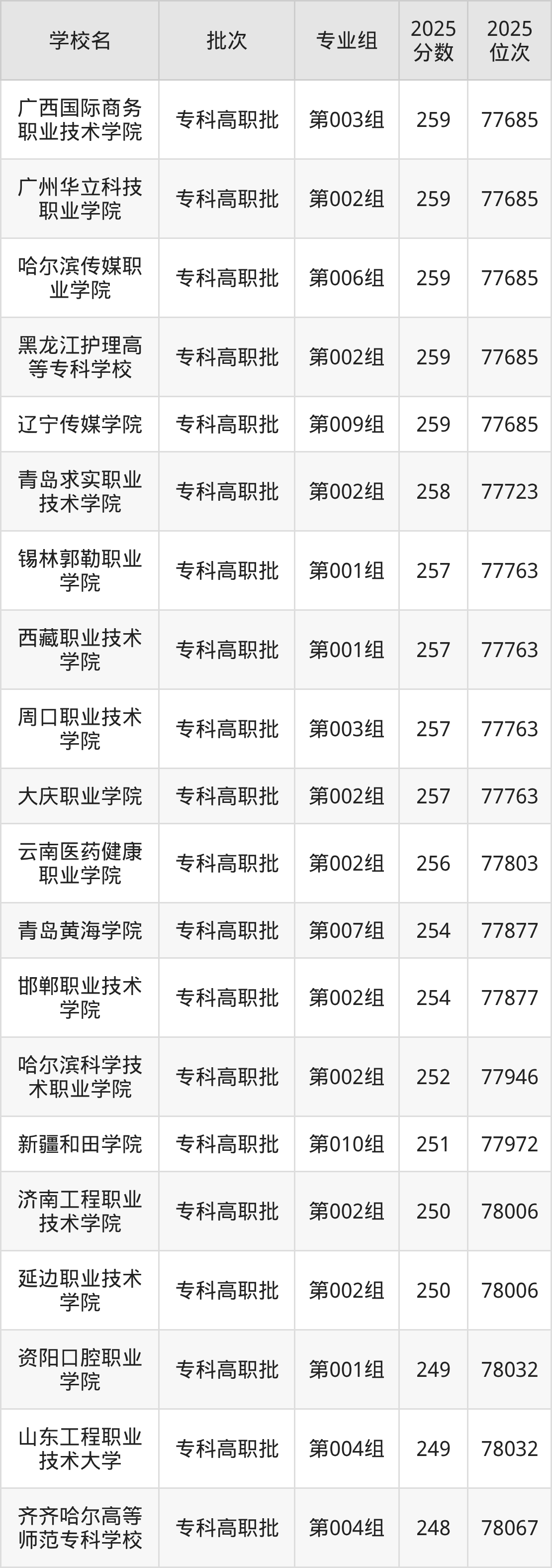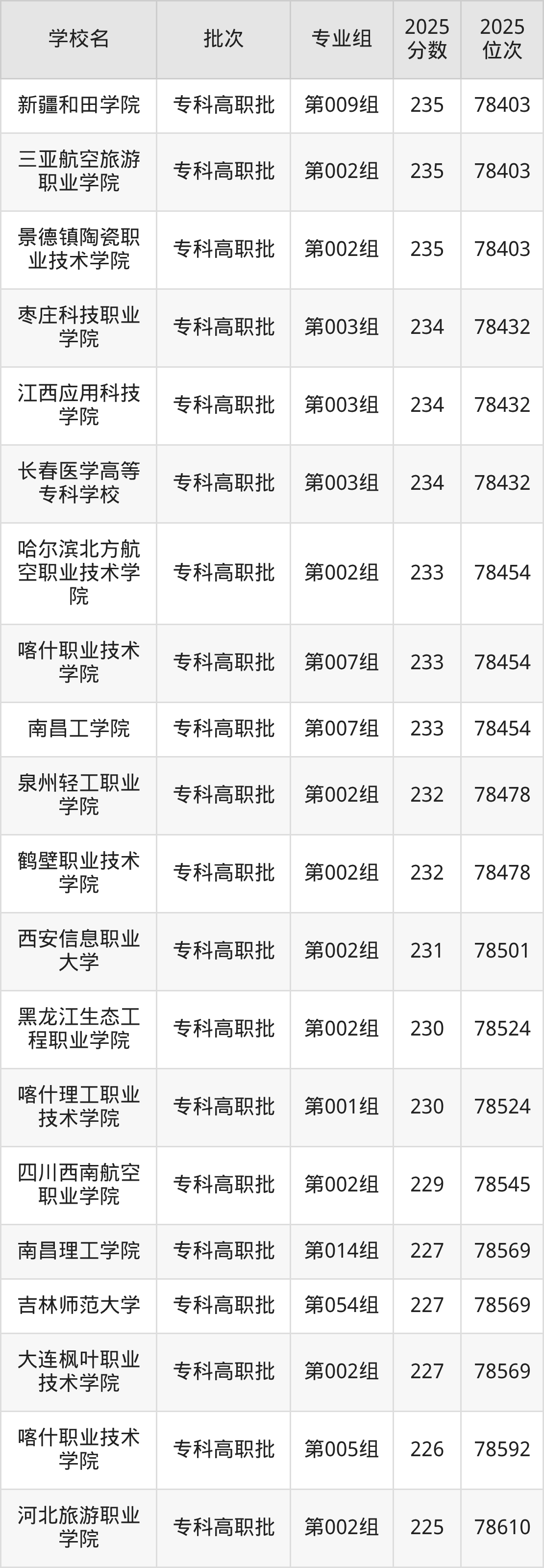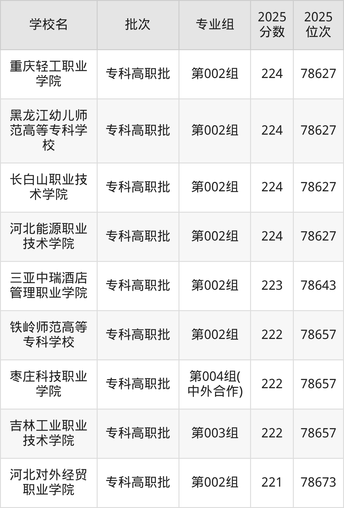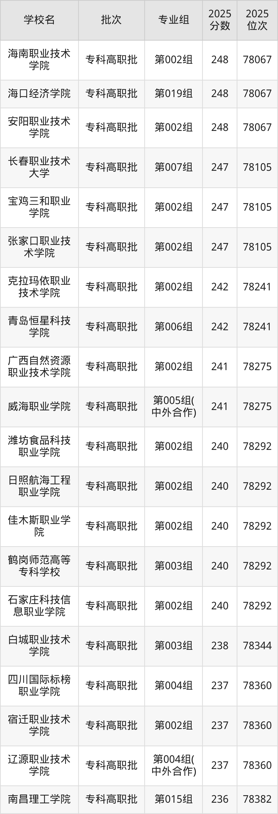 2025年吉林高考物理类244分(78168名~78185名)录取位次低于该区间(较稳妥)的有青岛恒星科技学院第006组(78241名)、克拉玛依职业技术学院第002组(78241名)等;录取位次高于该区间(可冲)的有张家口职业技术学院第002组(78105名)、长春职业技术大学第007组(78105名)等。