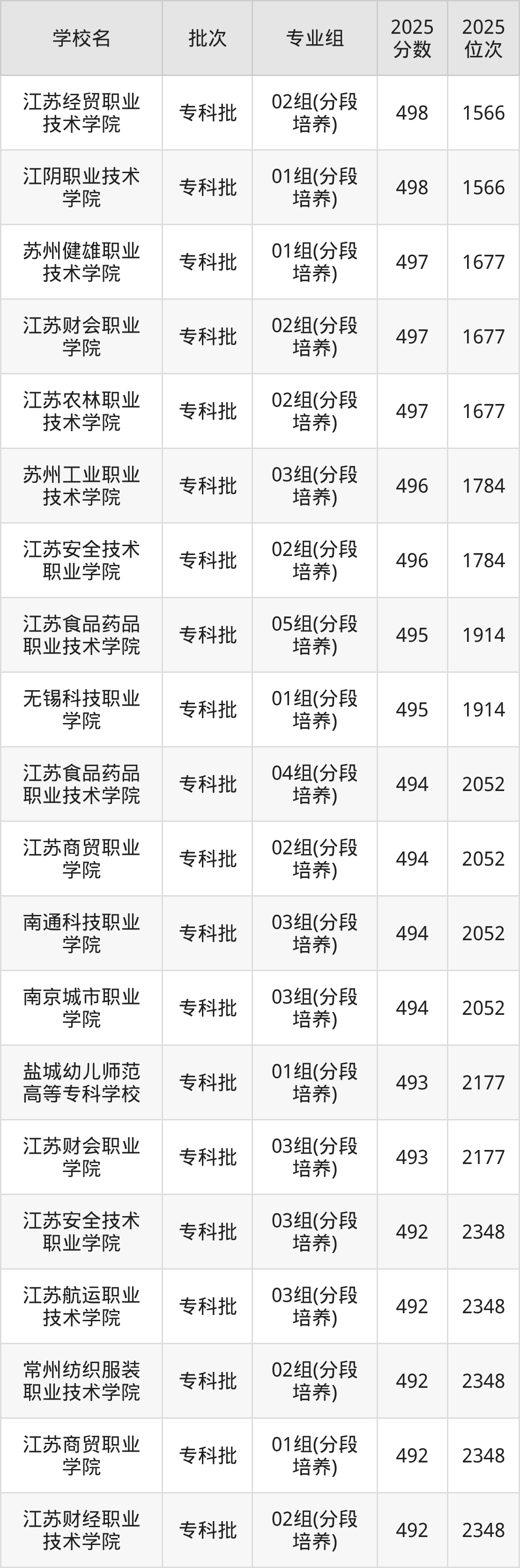 另外录取位次低于该区间(较稳妥)的有江苏商贸职业学院01组(分段培养)(2348名)、江苏航运职业技术学院03组(分段培养)(2348名)等;录取位次高于该区间(可冲)的有武昌工学院01组(50536名)、武汉东湖学院01组(50536名)等。