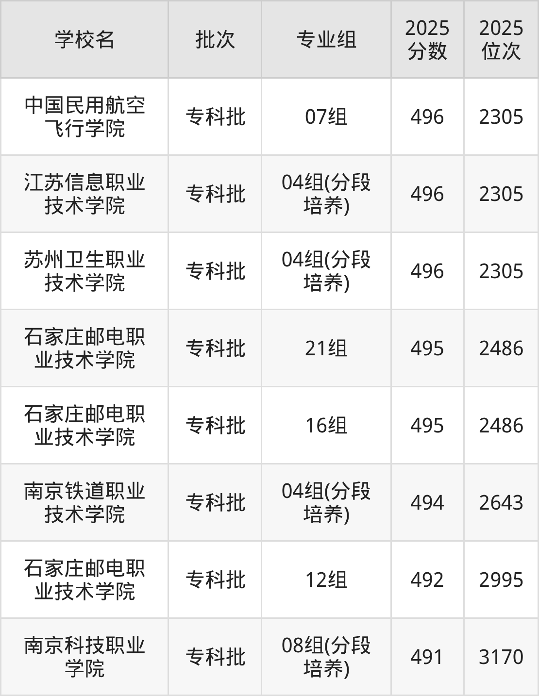2025年江苏高考历史类493分(2053名~2177名)能上的大学有南京医科大学康达学院02组、江西应用科技学院01组、青岛恒星科技学院01组、齐鲁理工学院01组等。