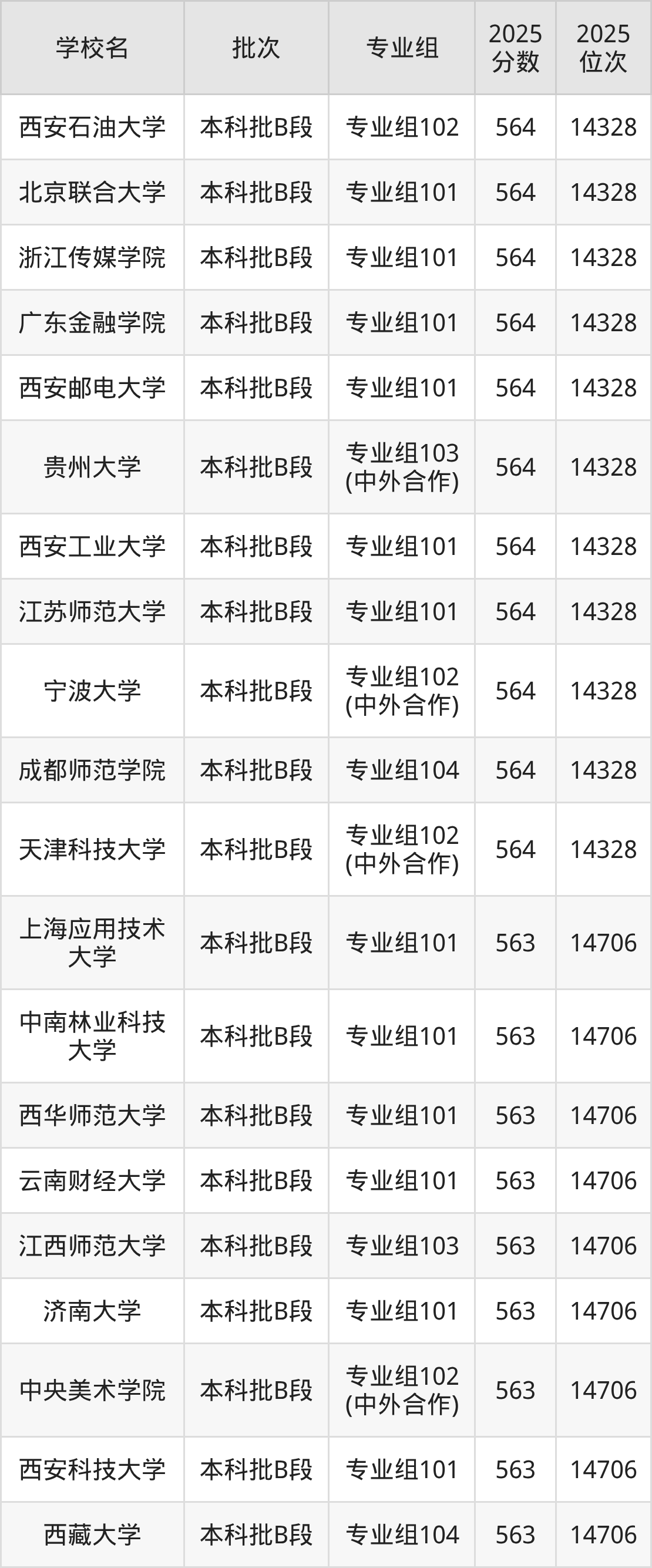 这些都是2026年高考历史类14707名~15119名考生可以报考的大学,更多学校名单如下表所示: