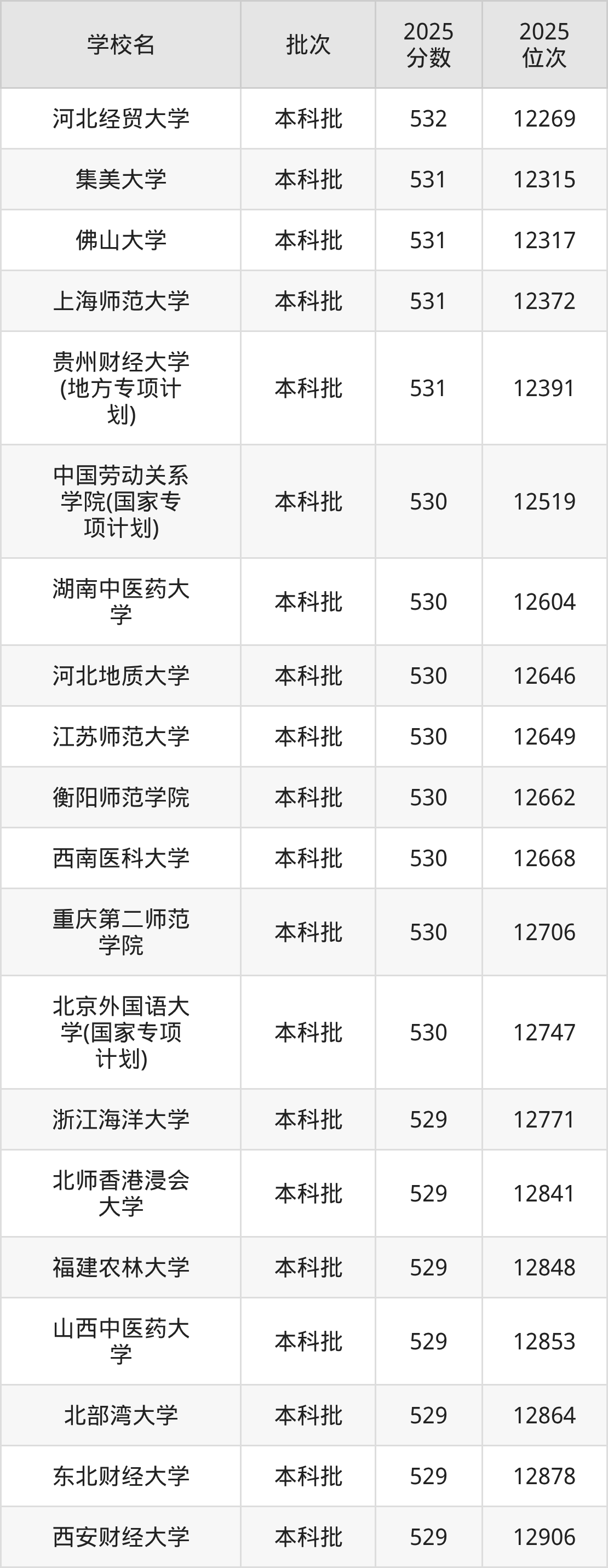 这些都是2026年高考历史类12769名~13017名考生可以报考的大学,更多学校名单如下表所示: