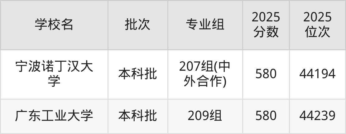 二、广东581分位次排名能上的大学