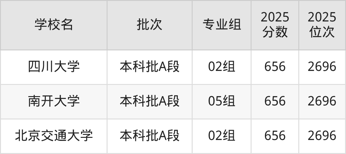 这些都是2026年高考2138名~2251名考生可以报考的大学,更多学校名单如下表所示: