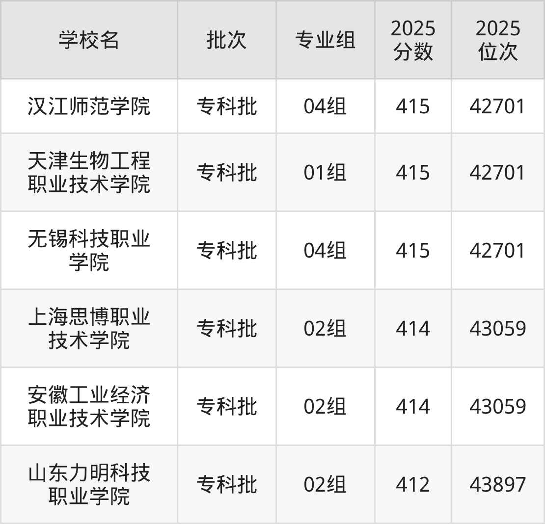 这些都是2026年高考物理类43060名~43478名考生可以报考的大学,更多学校名单如下表所示: