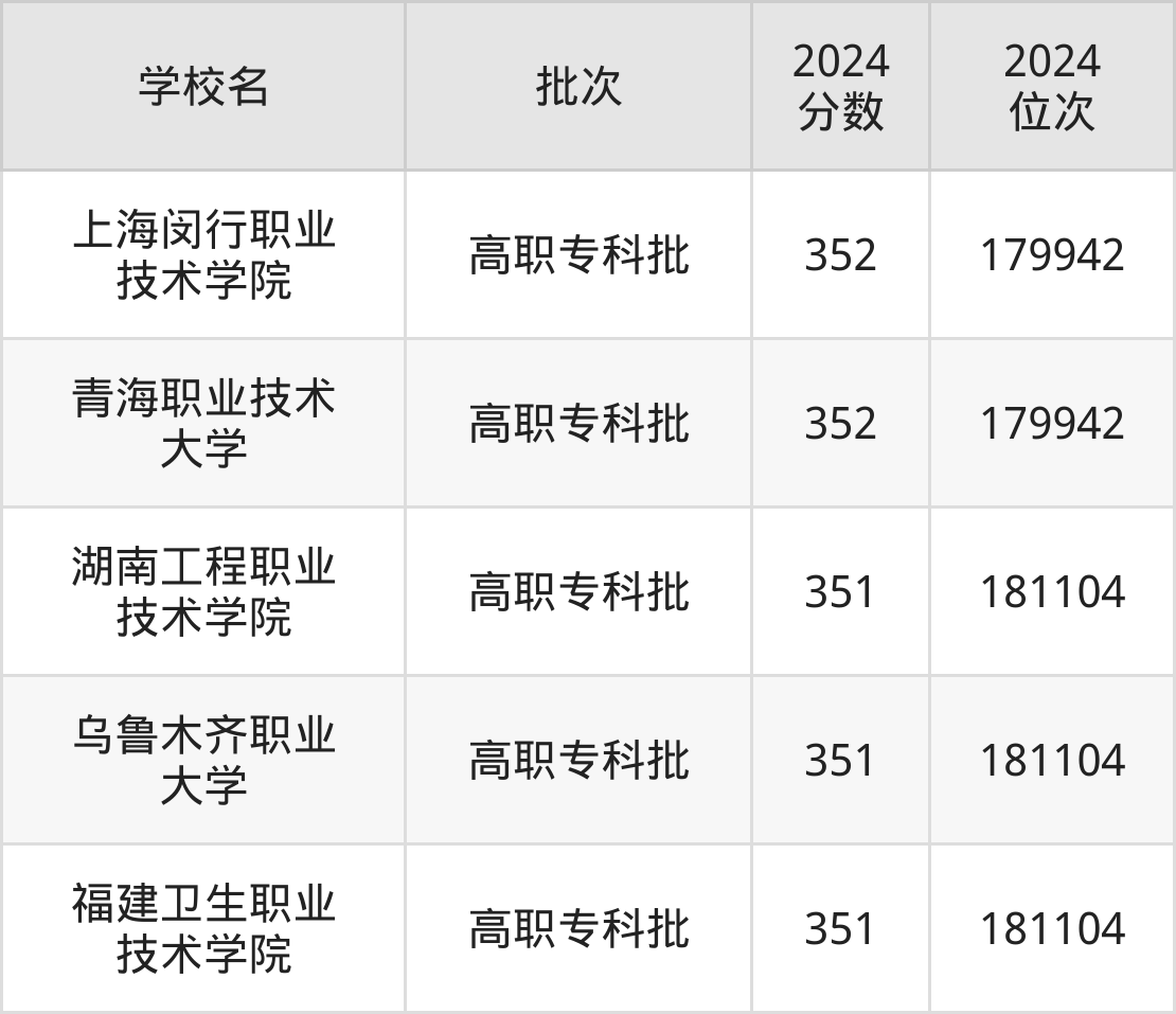 2024年河南高考文科351分(179943名~181104名)能上的大学有乌鲁木齐职业大学、湖南工程职业技术学院、福建卫生职业技术学院。