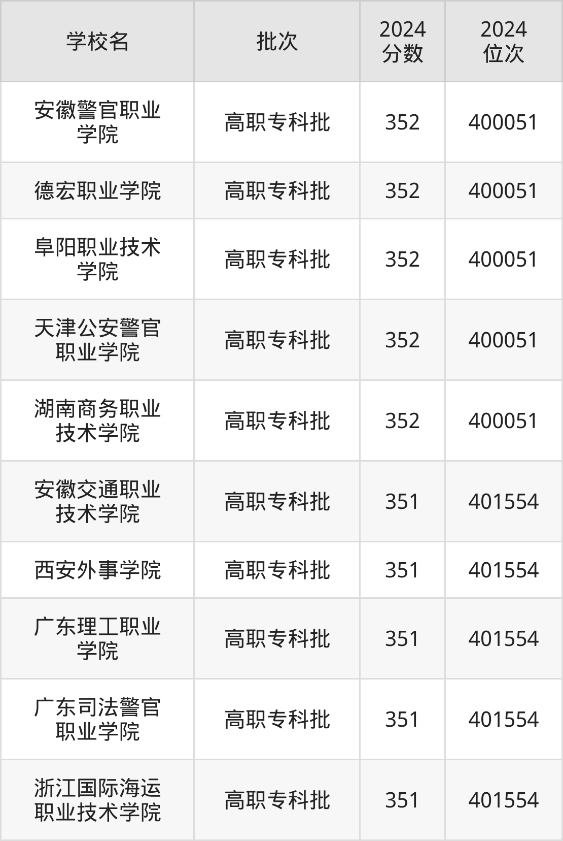 2024年河南高考理科351分(400053名~401555名)能上的大学有西安外事学院、广东理工职业学院、广东司法警官职业学院、安徽交通职业技术学院等。