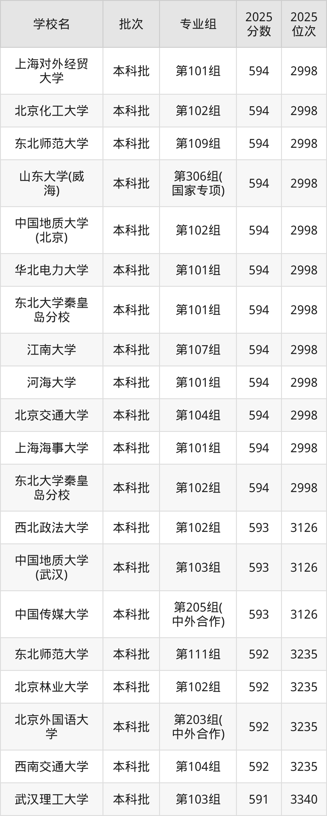 这些都是2026年高考历史类3480名~3614名考生可以报考的大学,更多学校名单如下表所示: