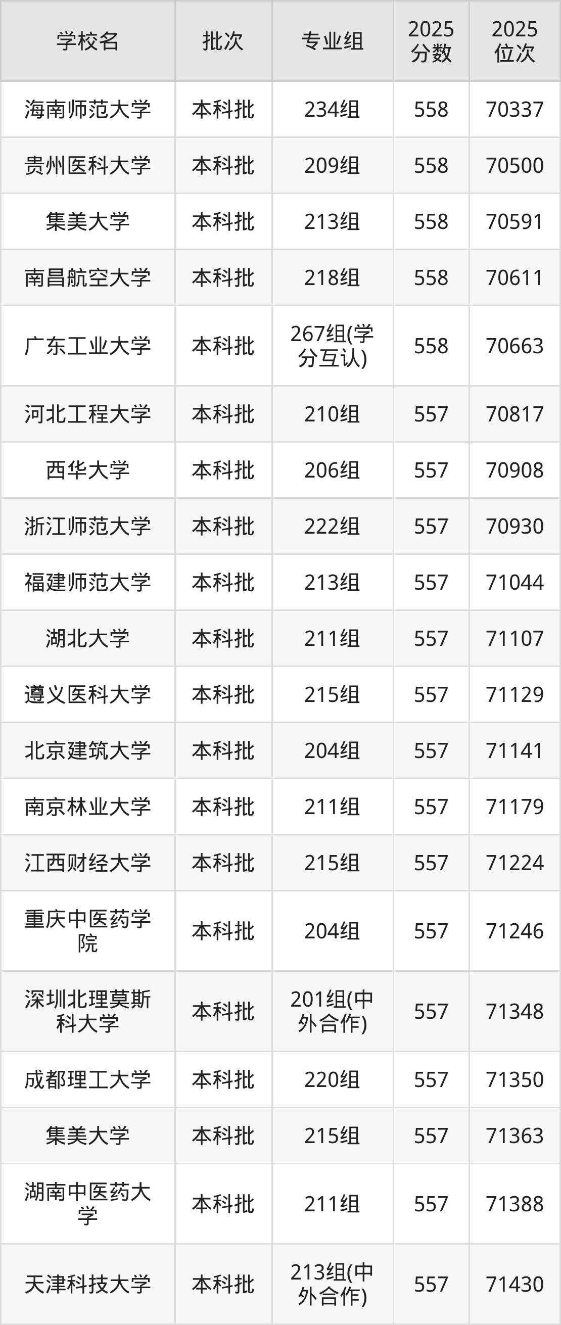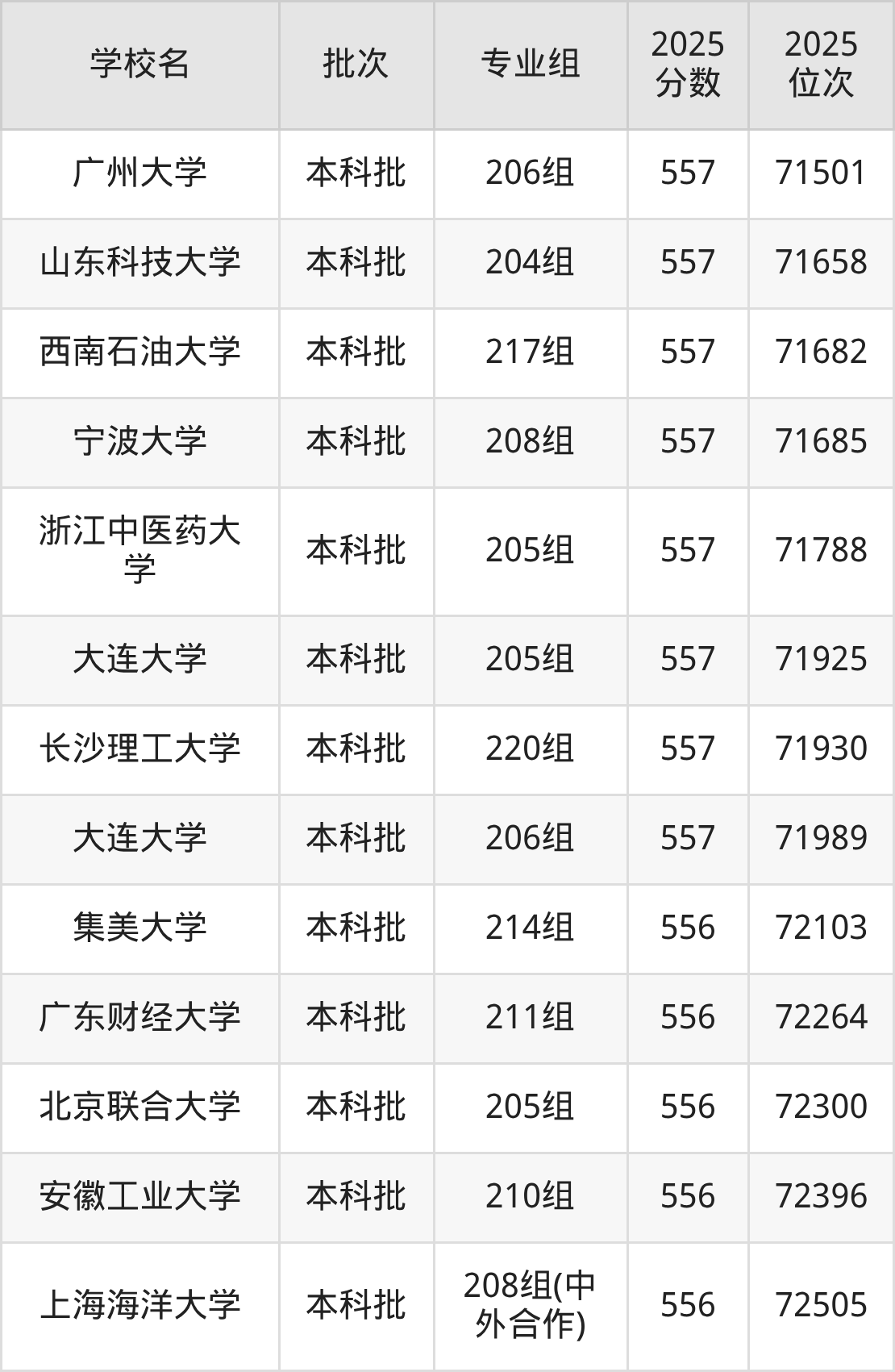 二、广东557分位次排名能上的大学