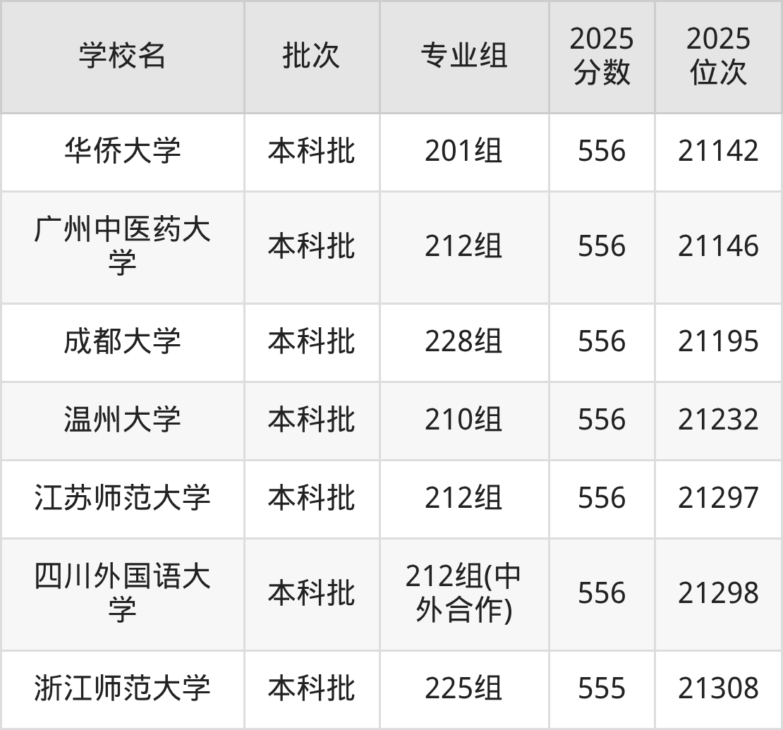 这些都是2026年高考历史类20330名~20815名考生可以报考的大学,更多学校名单如下表所示: