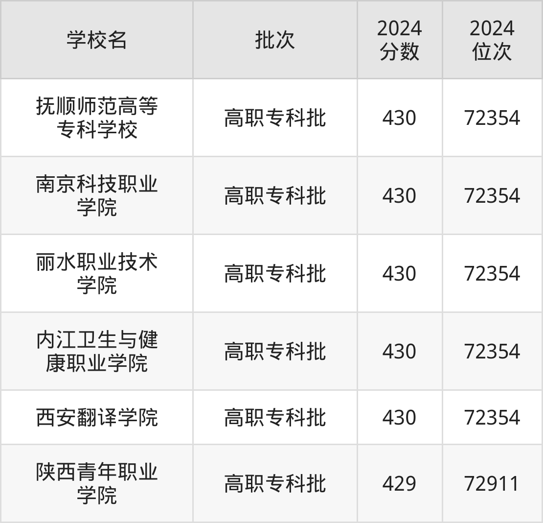 这些都是2025年高考文科72355名~72911名考生可以报考的大学,更多学校名单如下表所示: