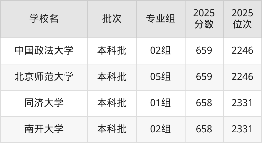 这些都是2026年高考1801名~1882名考生可以报考的大学,更多学校名单如下表所示: