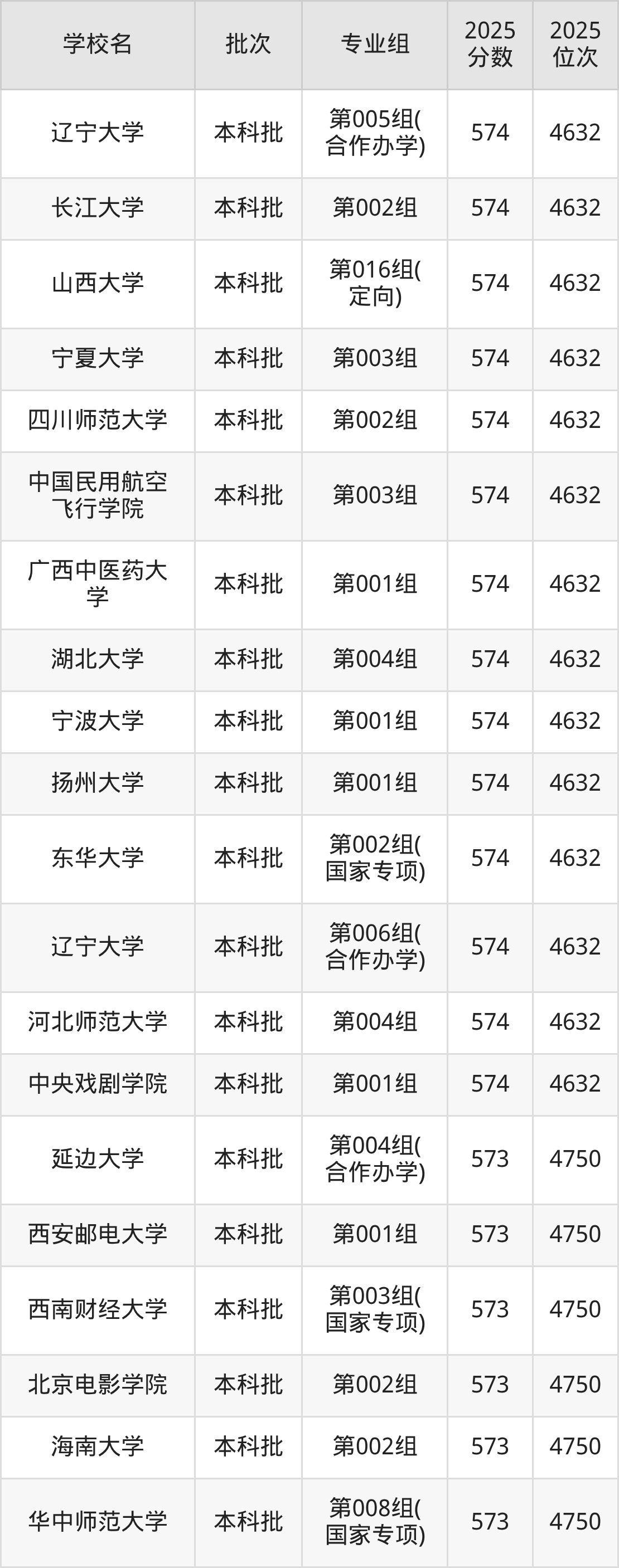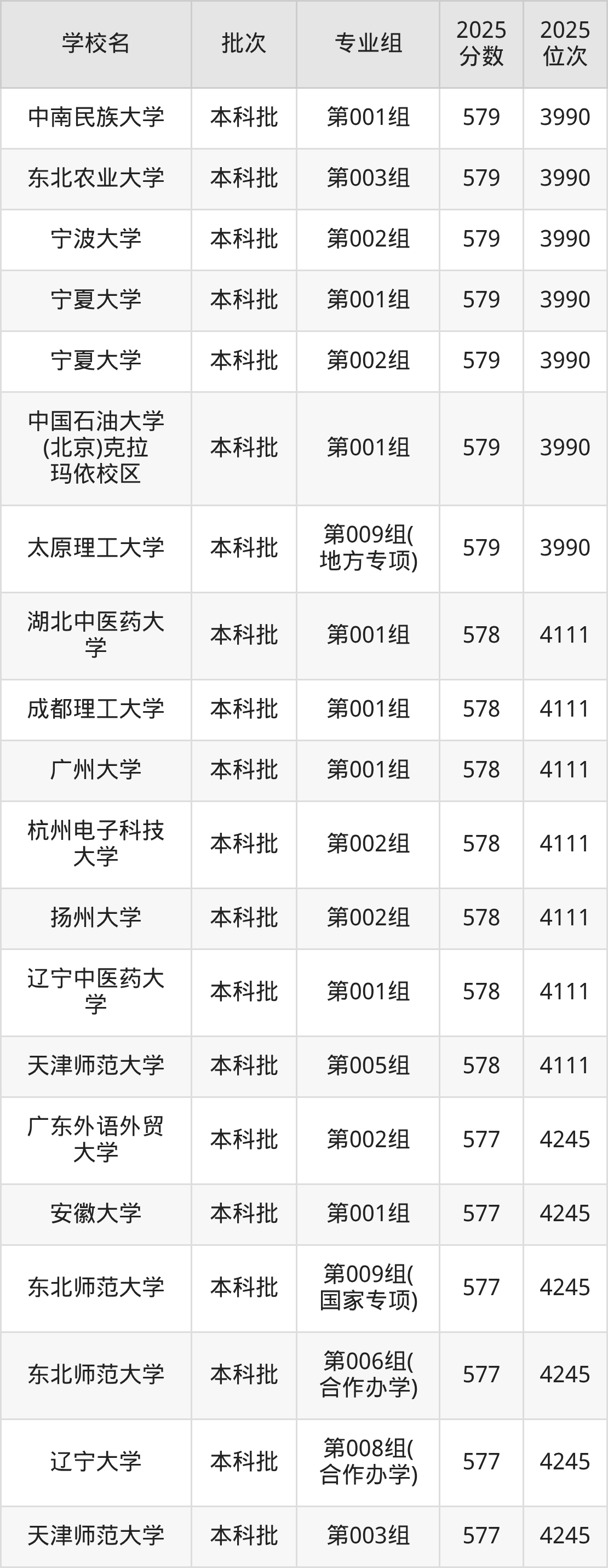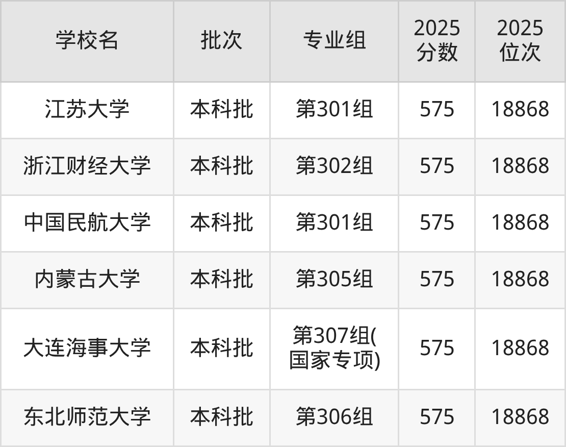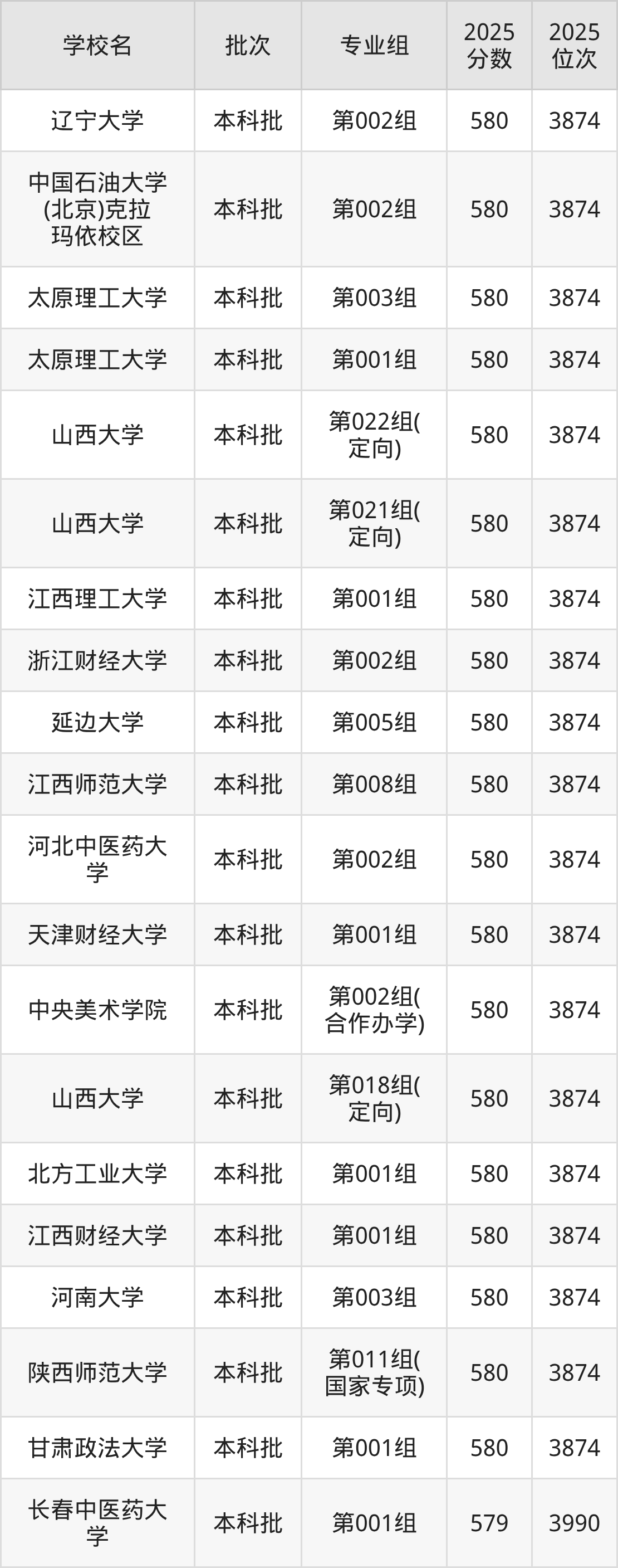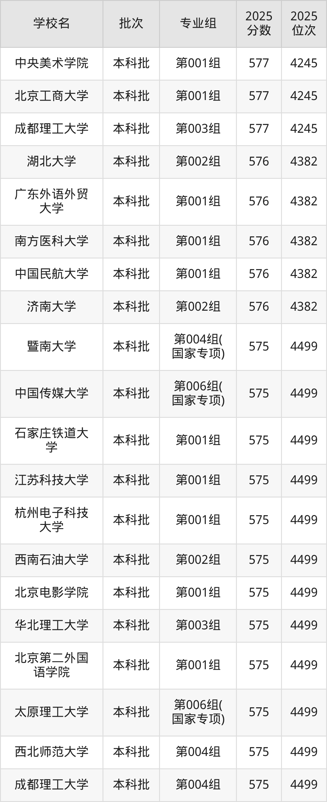 2025年山西高考历史类576分(4246名~4382名)能上的大学有中国民航大学第001组、济南大学第002组、湖北大学第002组、广东外语外贸大学第001组等。