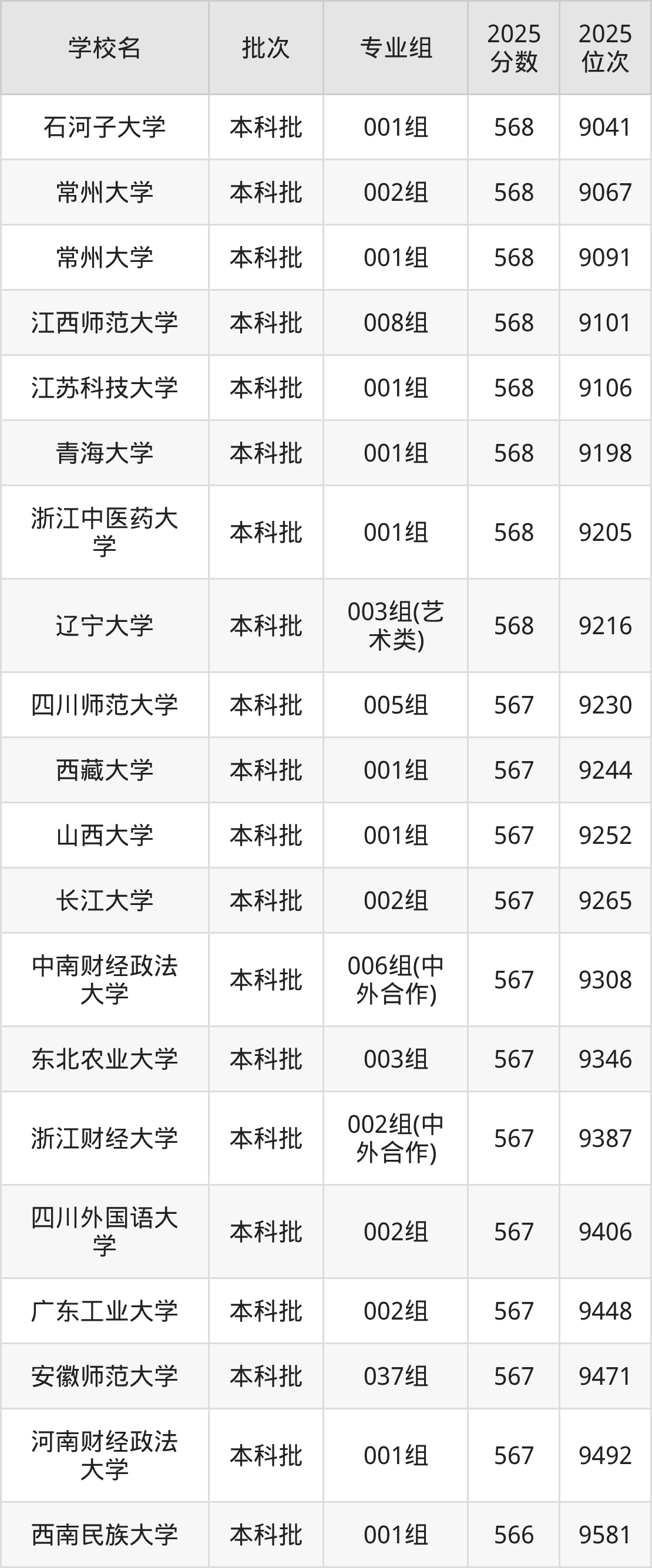 这些都是2026年高考历史类9505名~9740名考生可以报考的大学,更多学校名单如下表所示: