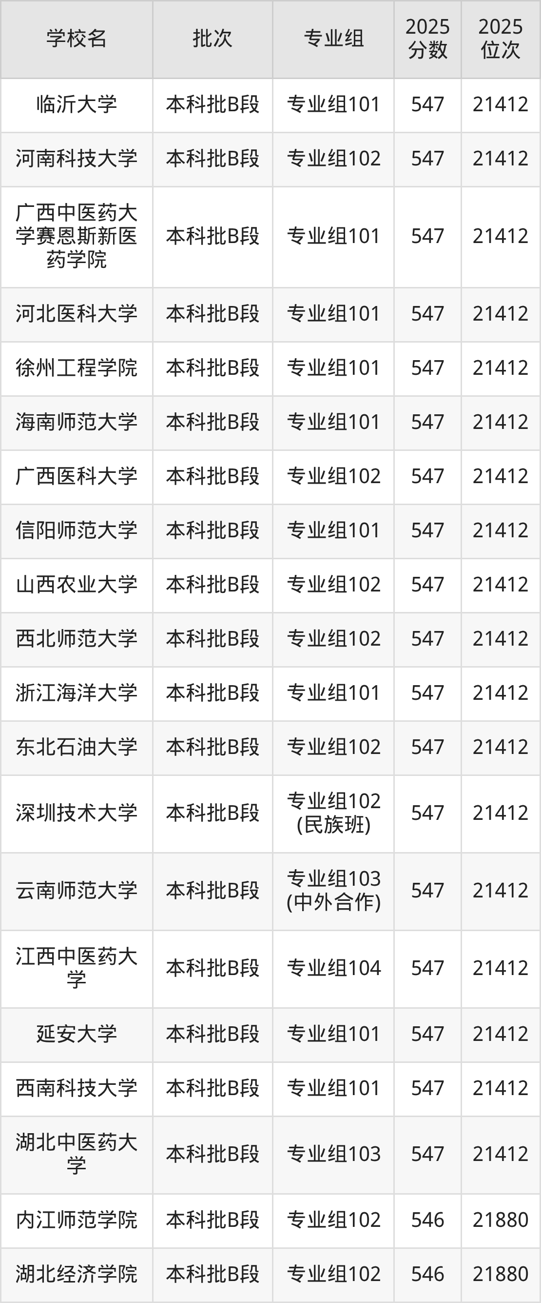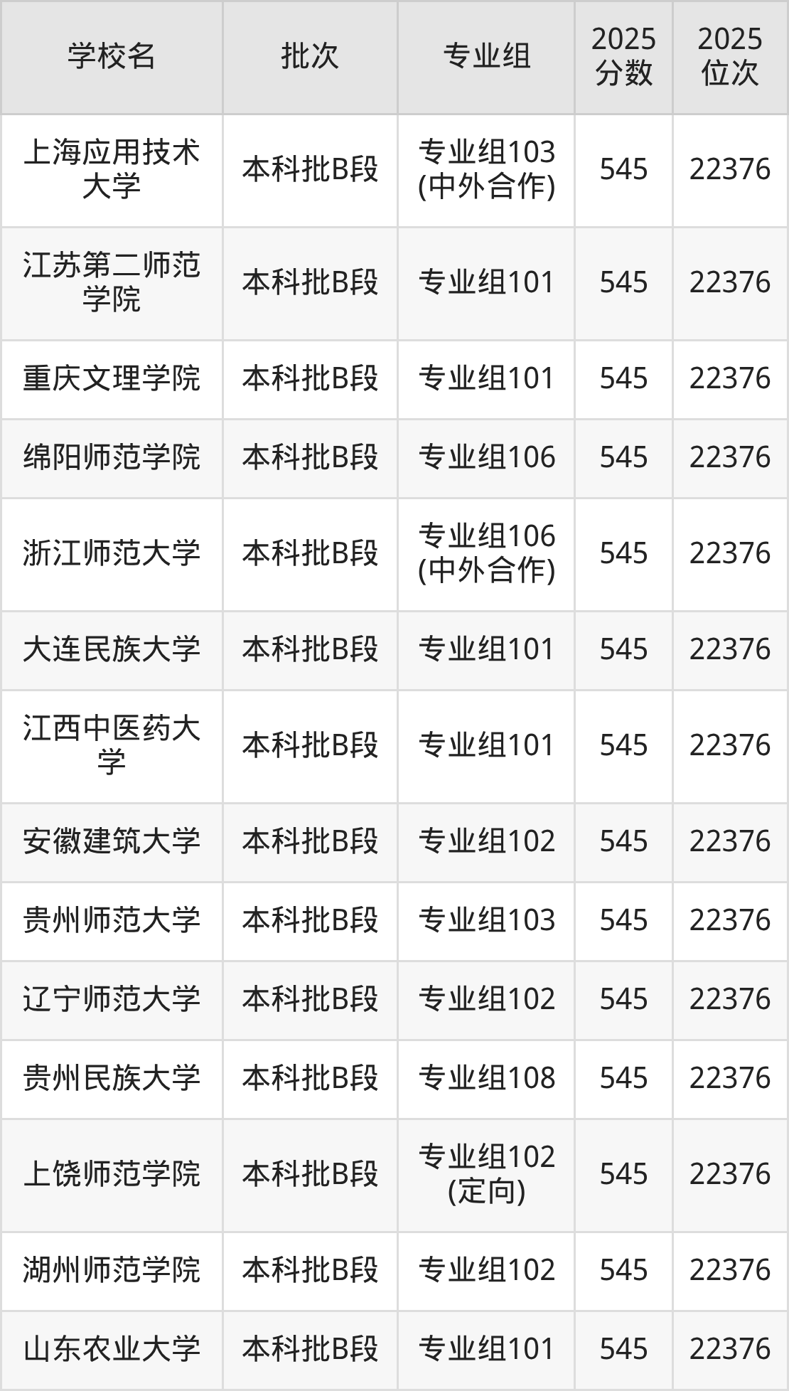 另外录取位次低于该区间(较稳妥)的有辽宁师范大学专业组102(22376名)、赣南师范大学专业组102(22376名)等;录取位次高于该区间(可冲)的有云南师范大学专业组103(中外合作)(21412名)、河南科技大学专业组102(21412名)等。