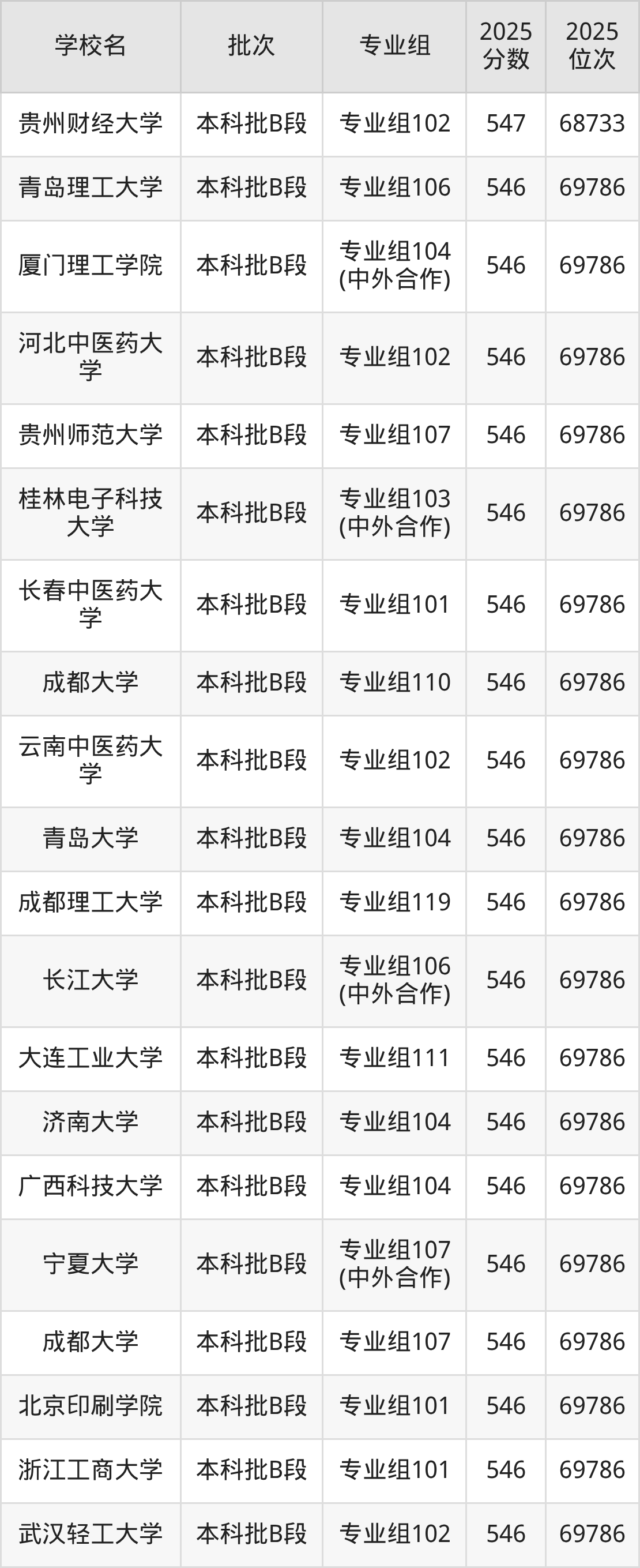 2025年四川高考物理类546分(68734名~69786名)能上的大学有济南大学专业组104、大连工业大学专业组111、长江大学专业组106(中外合作)、长春中医药大学专业组101等。