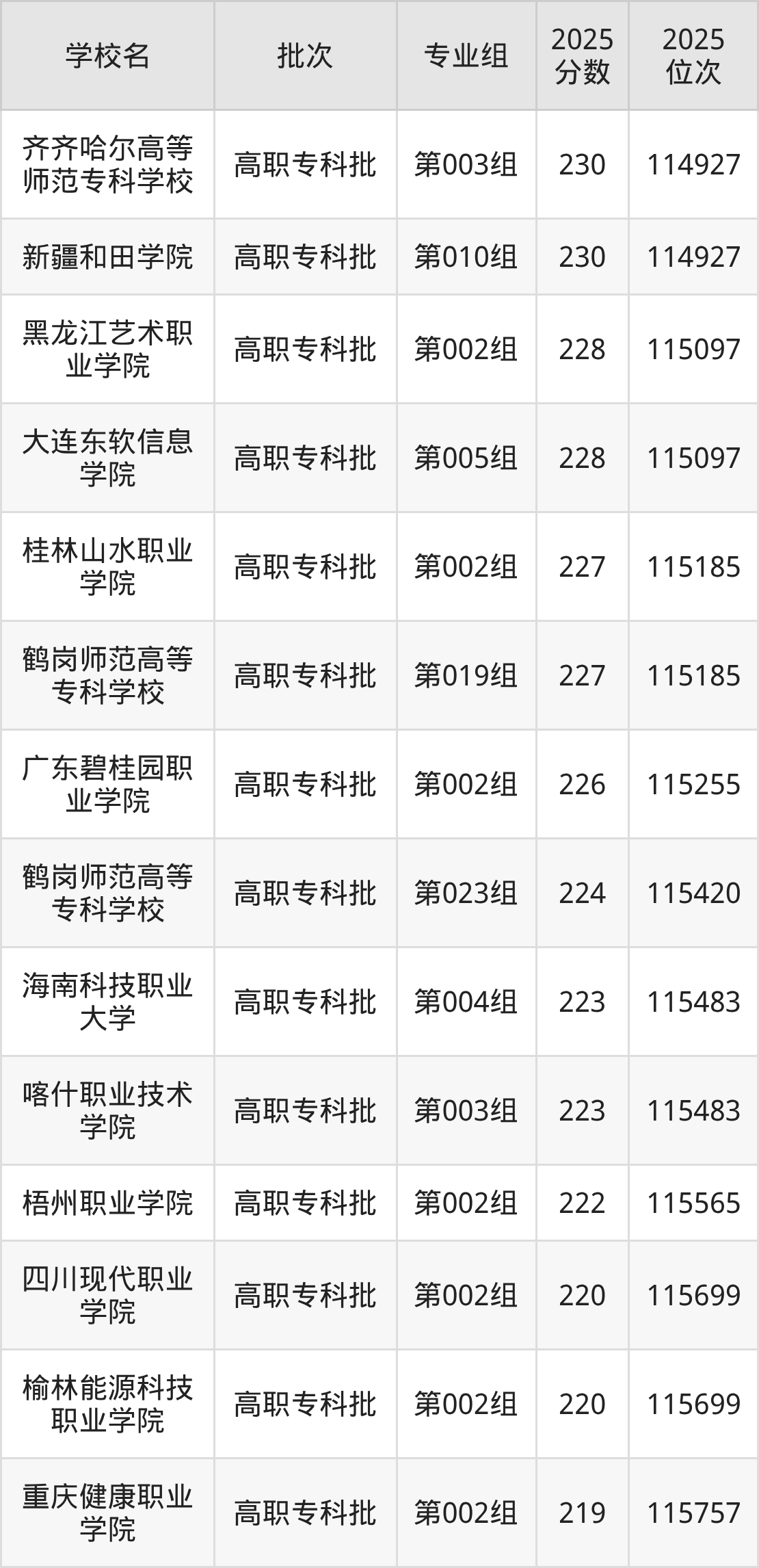 2025年黑龙江高考物理类224分(115346名~115420名)能上的大学有鹤岗师范高等专科学校第023组。
