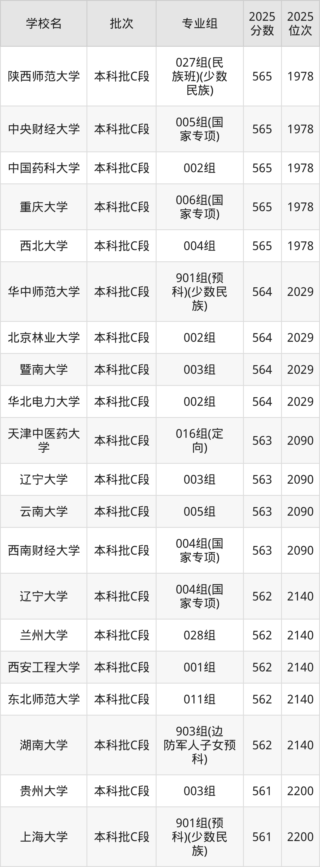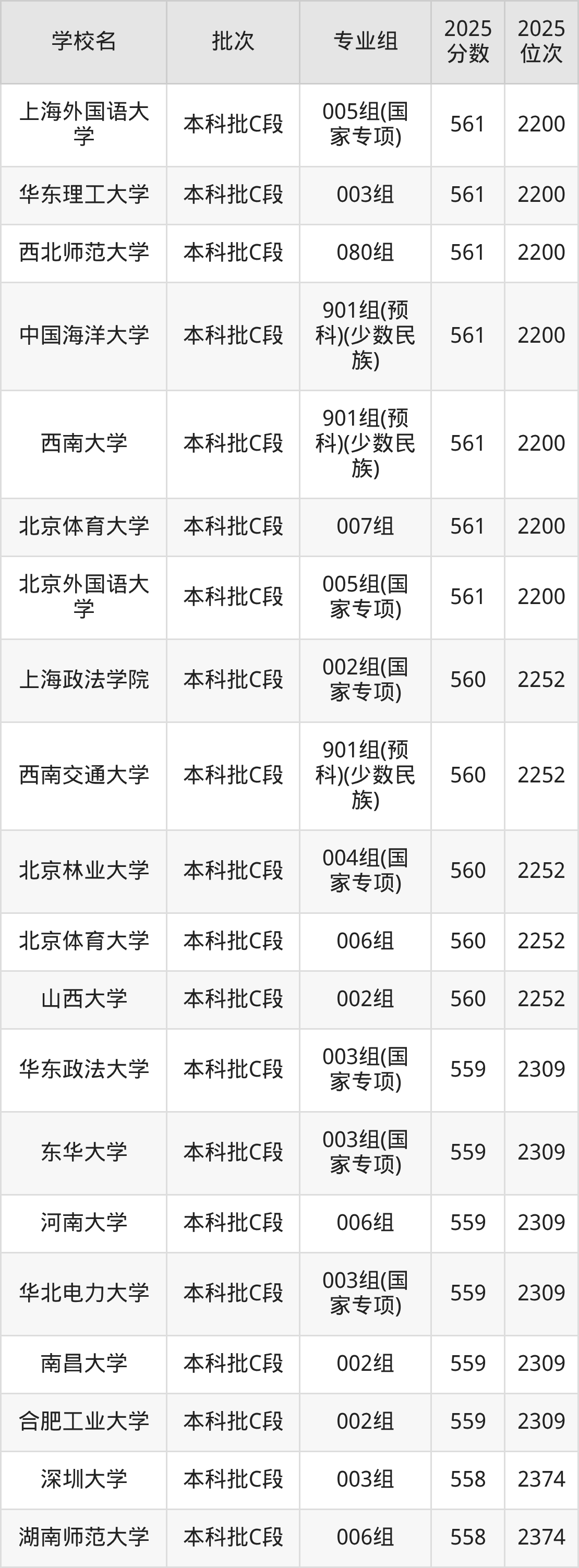 这些都是2026年高考历史类2443名~2499名考生可以报考的大学,更多学校名单如下表所示: