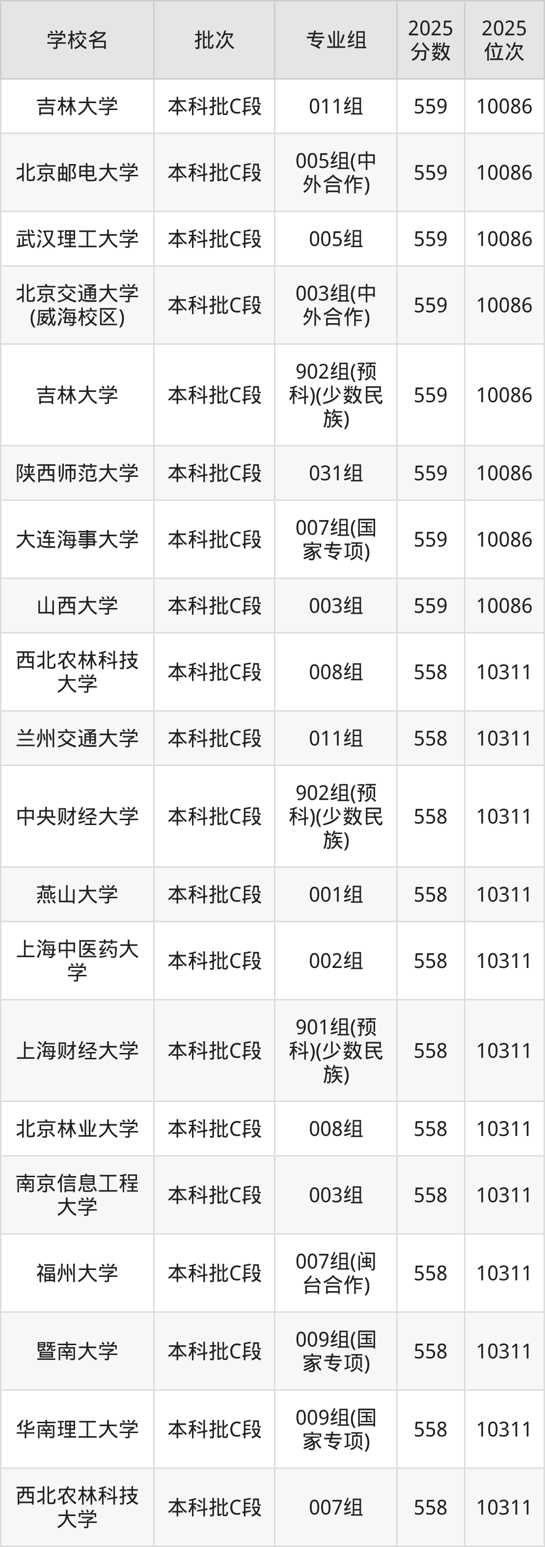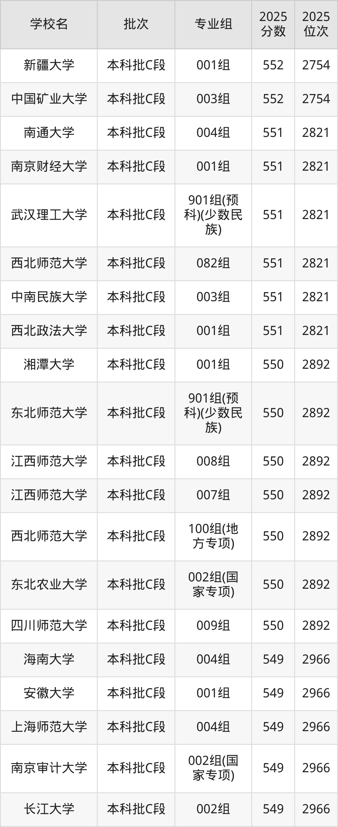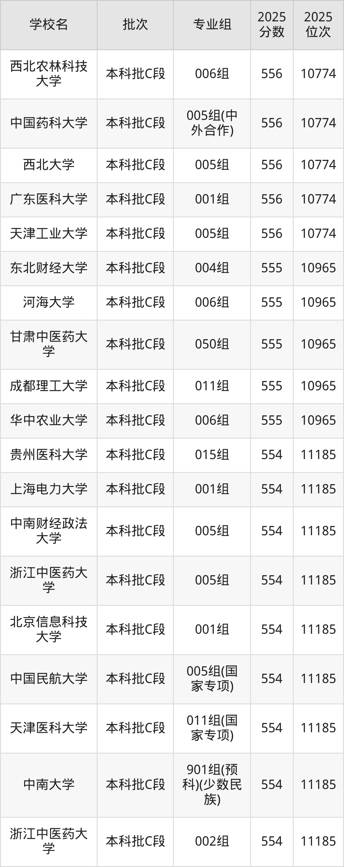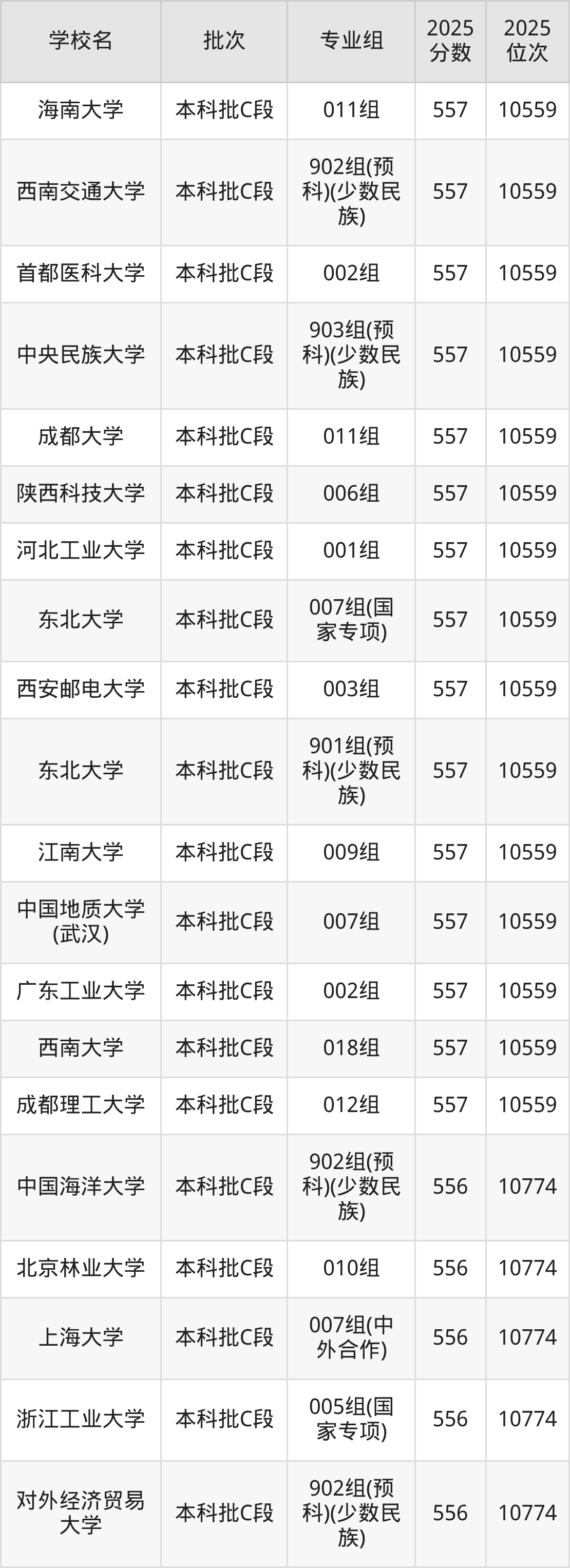 这些都是2026年高考物理类10560名~10774名考生可以报考的大学,更多学校名单如下表所示: