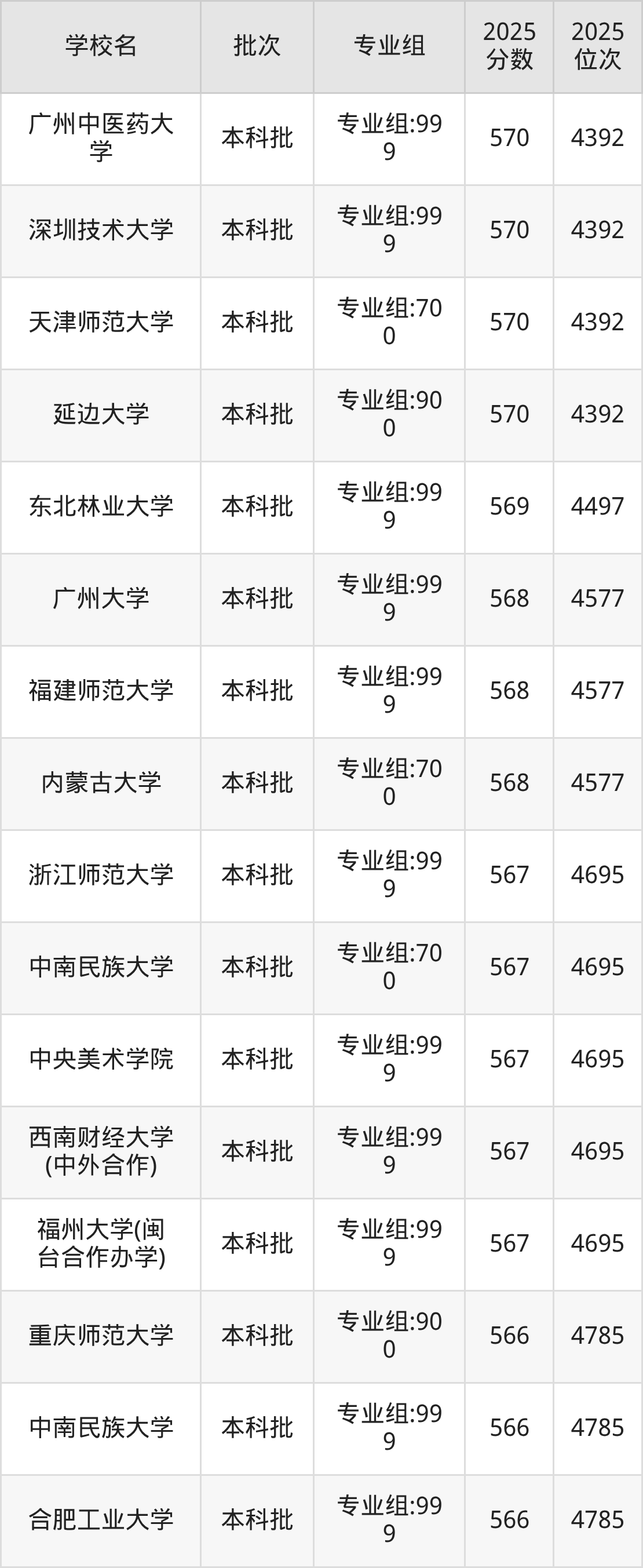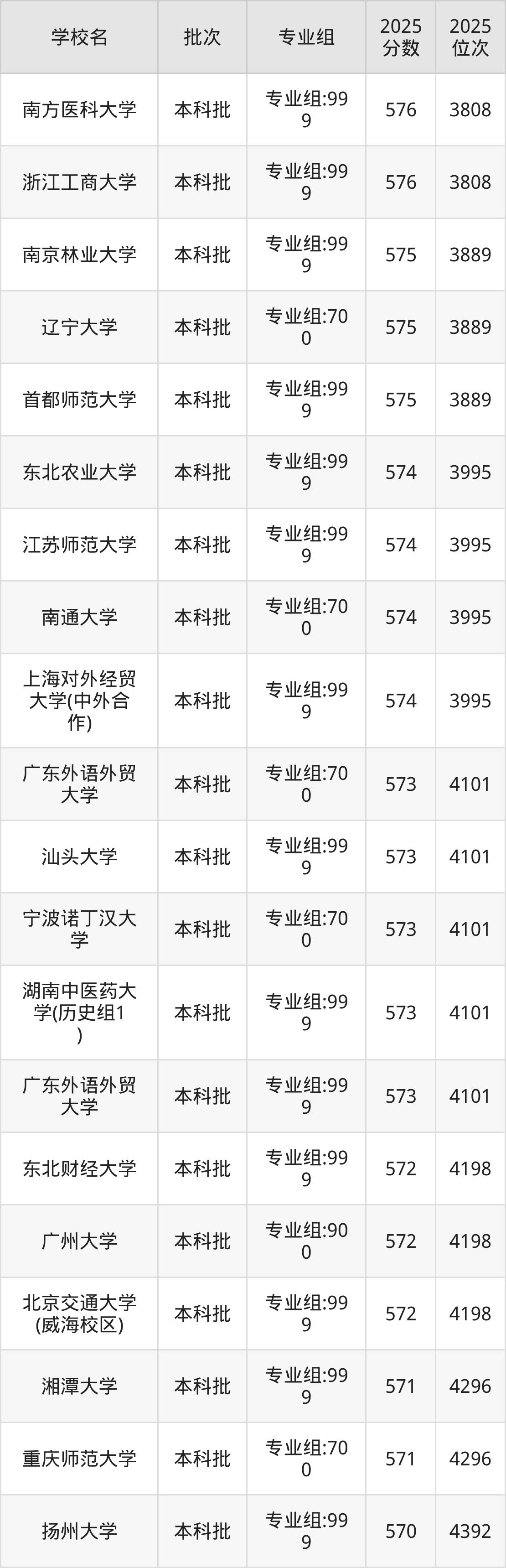 这些都是2026年高考历史类4199名~4296名考生可以报考的大学,更多学校名单如下表所示: