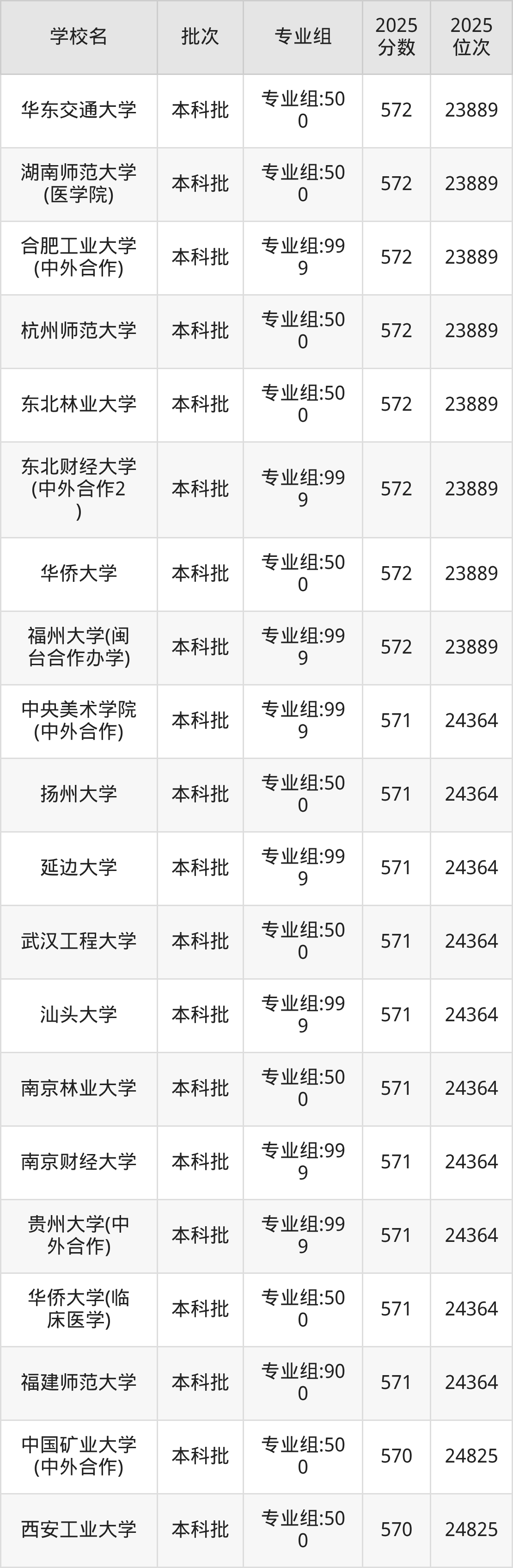 二、福建571分位次排名能上的大学