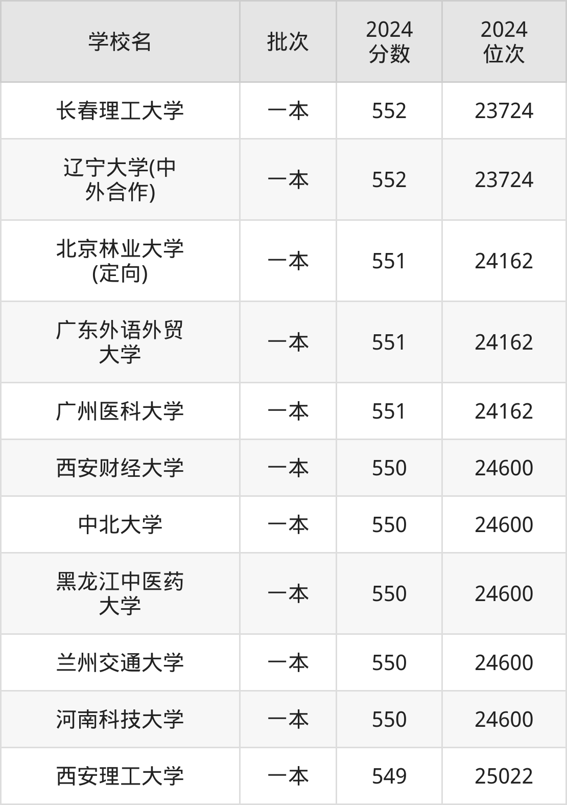 2024年云南高考理科550分(24163名~24600名)能上的大学有西安财经大学、中北大学、黑龙江中医药大学、河南科技大学等。