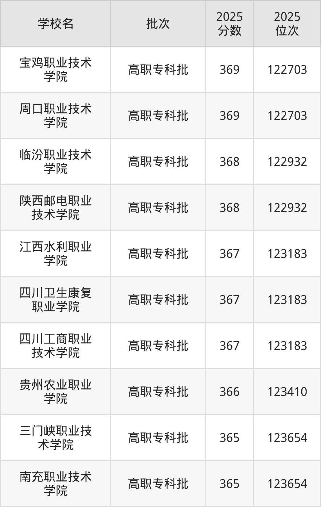 2025年重庆高考物理类366分(123184名~123410名)能上的大学有贵州农业职业学院。