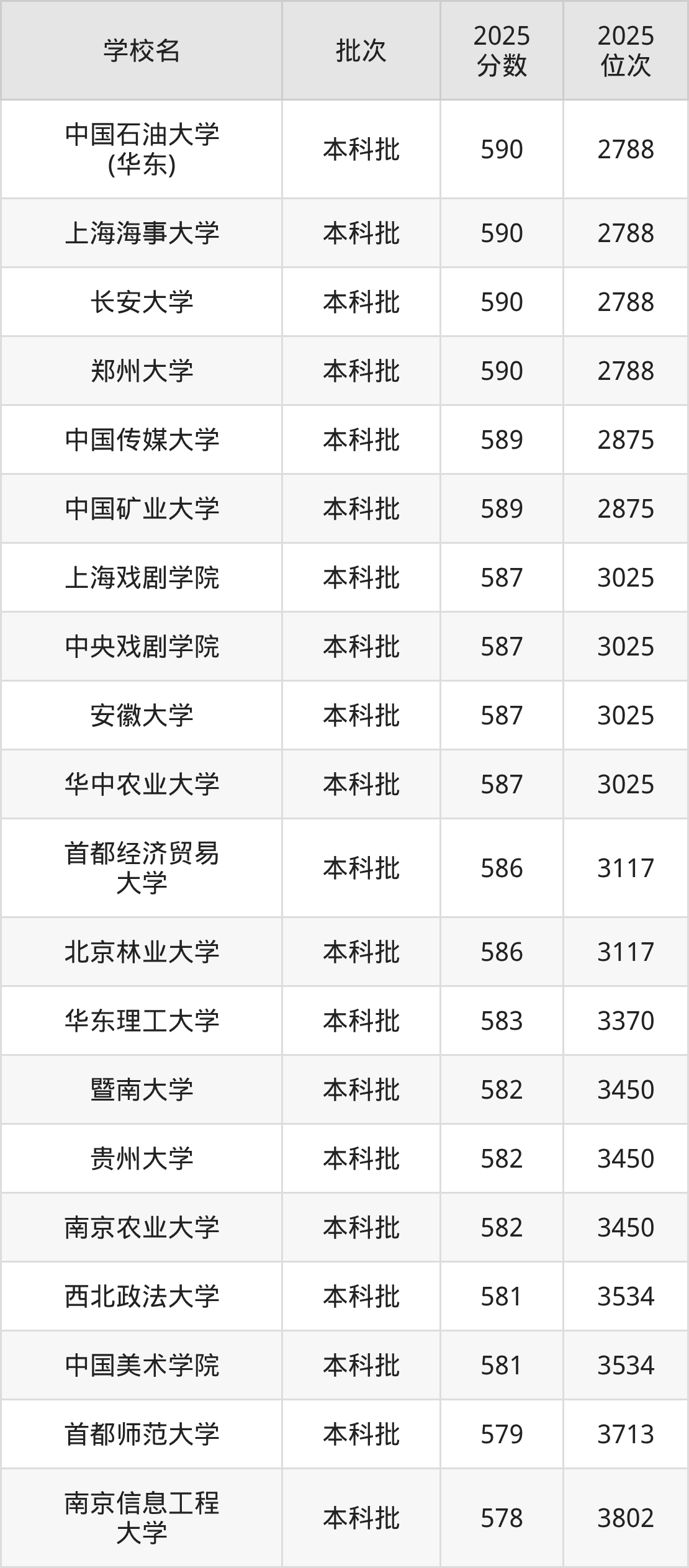这些都是2026年高考历史类3283名~3370名考生可以报考的大学,更多学校名单如下表所示: