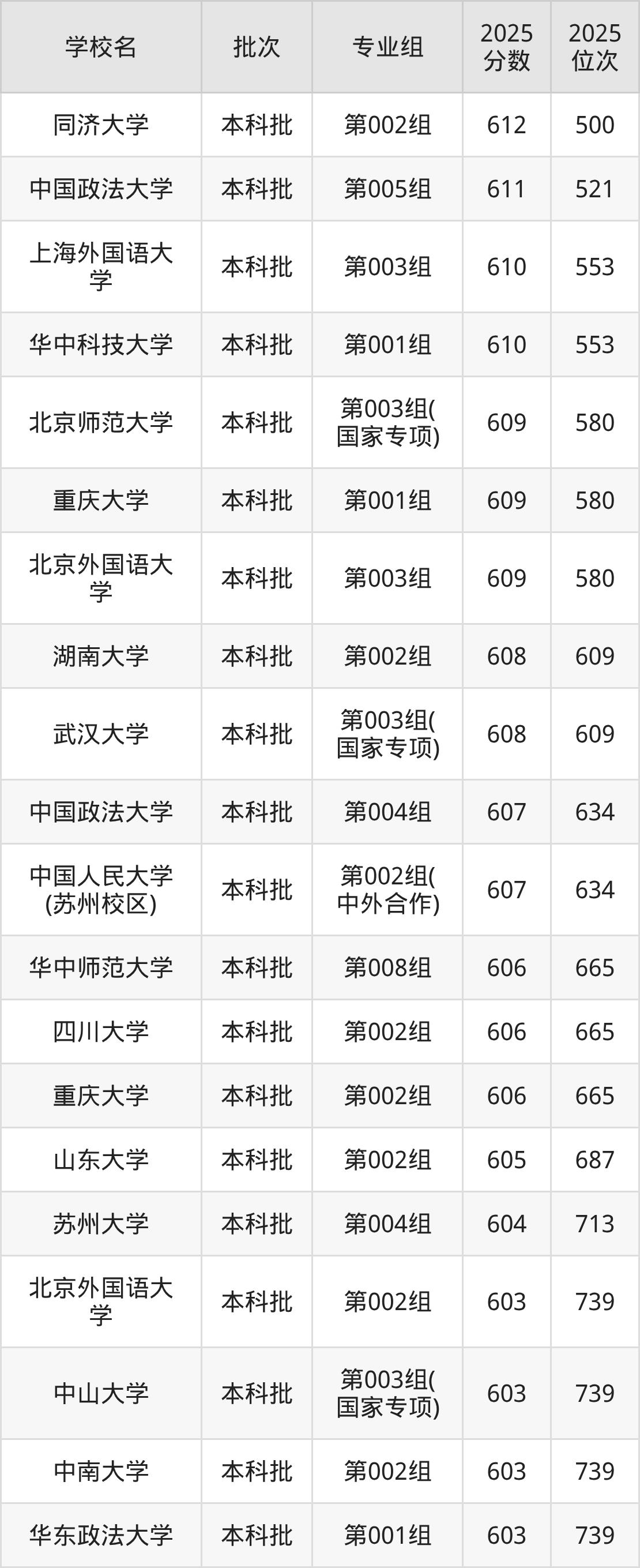 这些都是2026年高考历史类988名~1025名考生可以报考的大学,更多学校名单如下表所示: