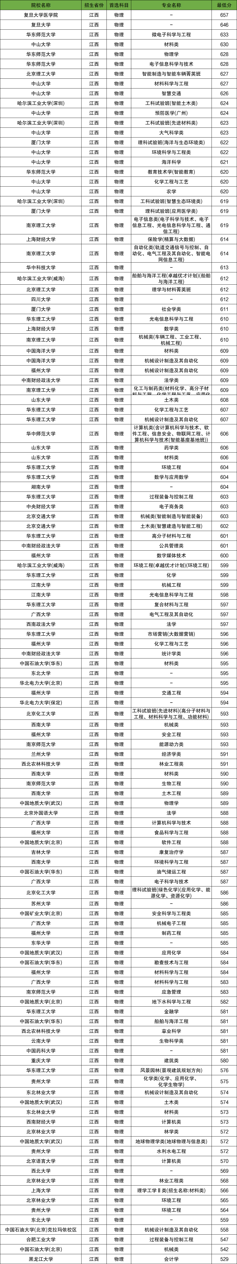 此外,在江西物理类招生的高校专项计划院校中,投档录取分数相对较低的大学有以下几所: