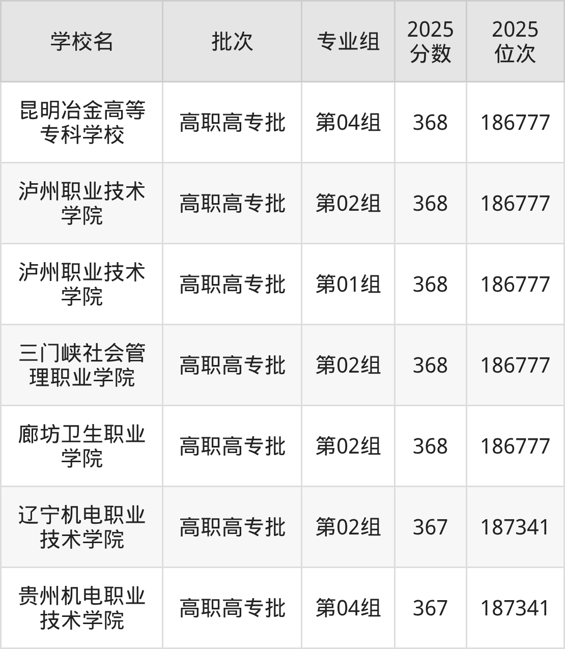 2025年湖北高考物理类367分(186778名~187341名)能上的大学有辽宁机电职业技术学院第02组、贵州机电职业技术学院第04组。
