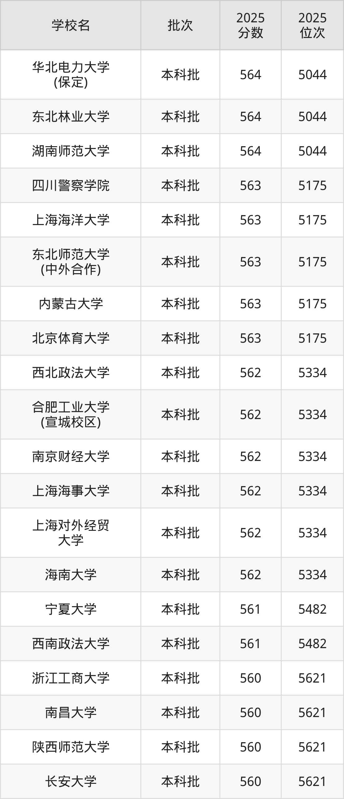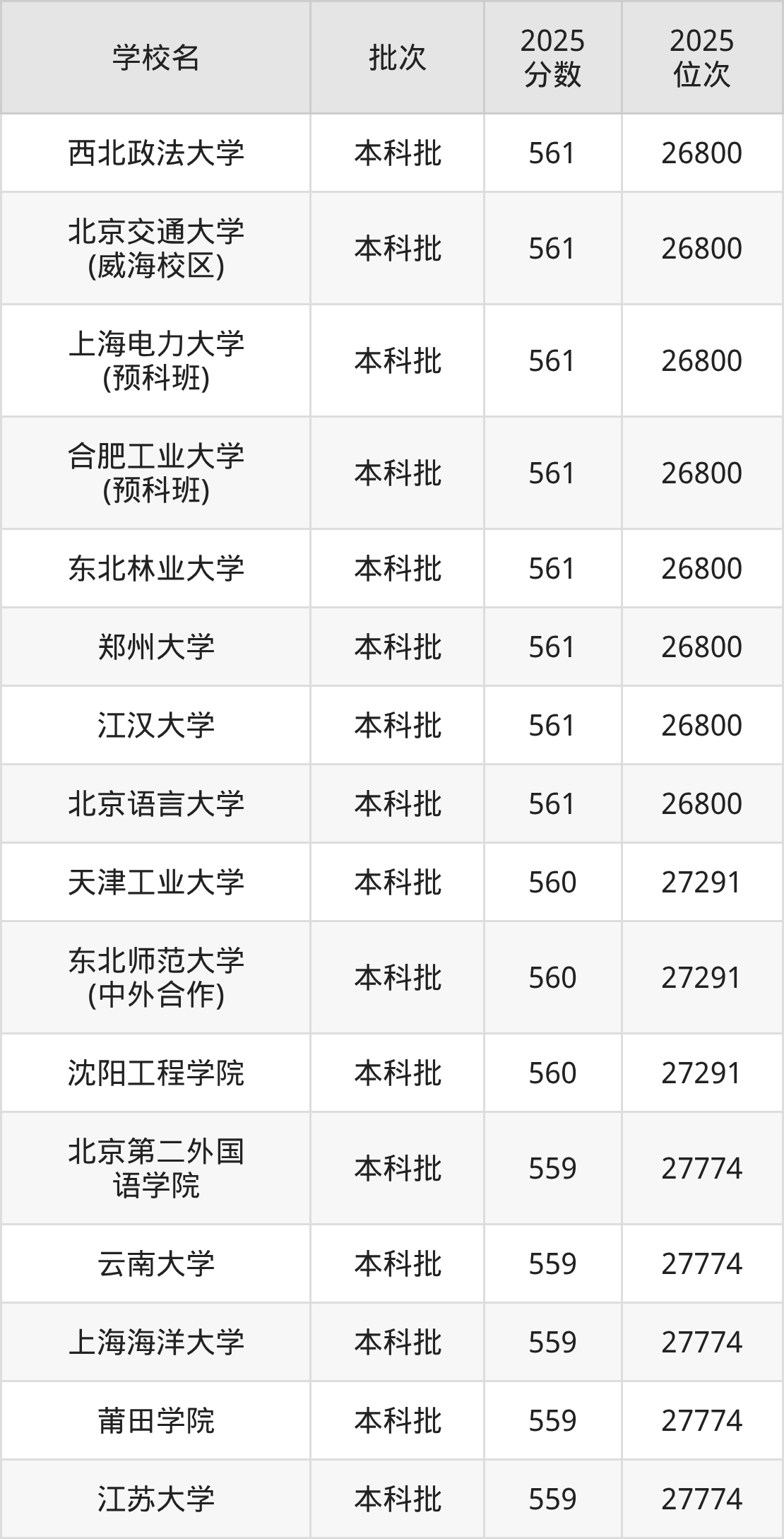 这些都是2026年高考历史类5483名~5621名考生可以报考的大学,更多学校名单如下表所示: