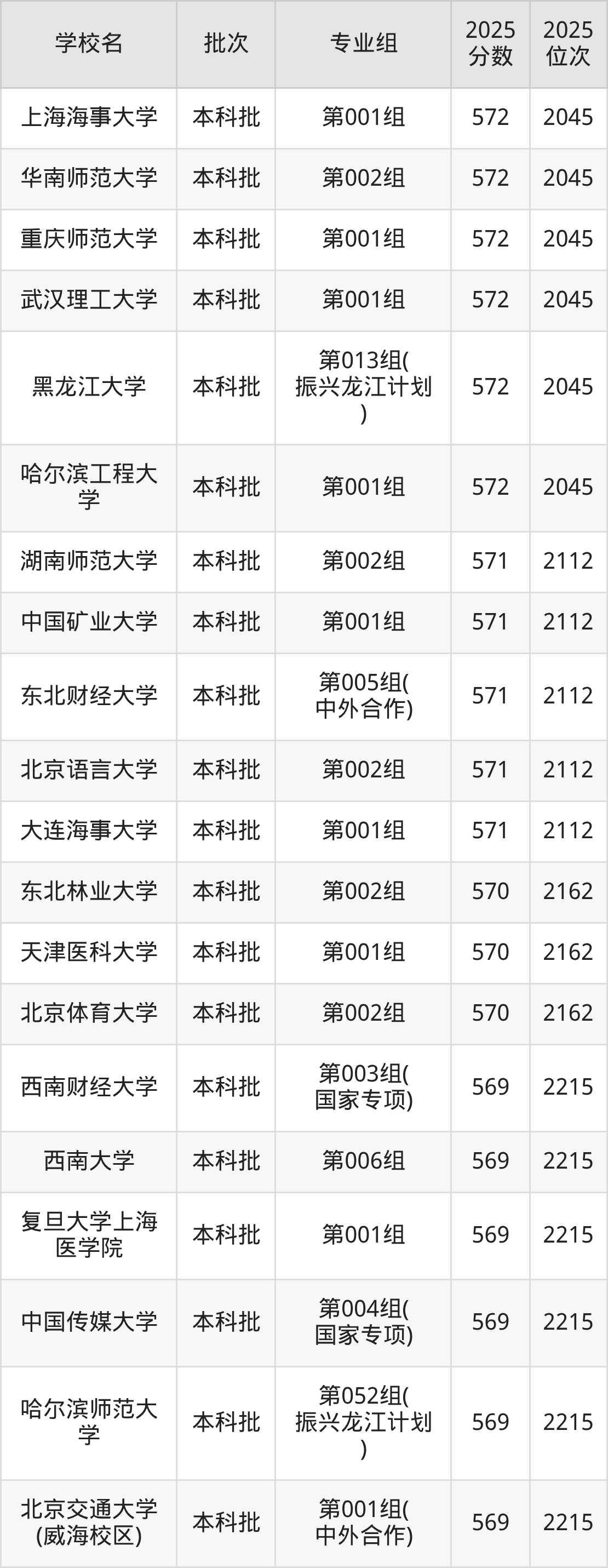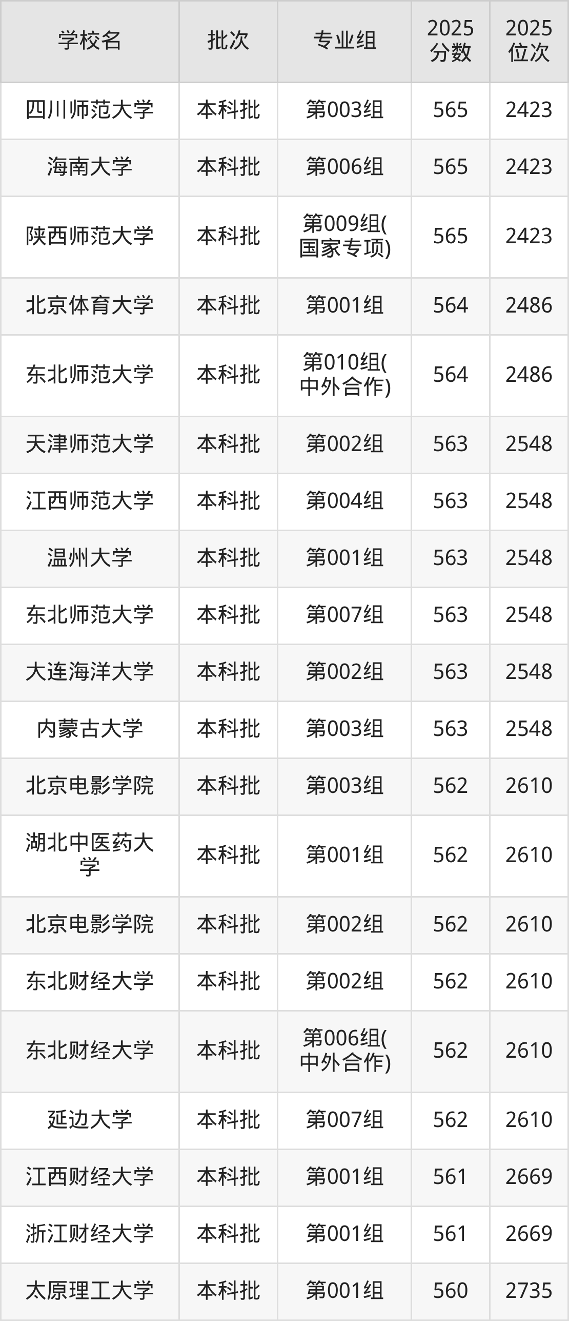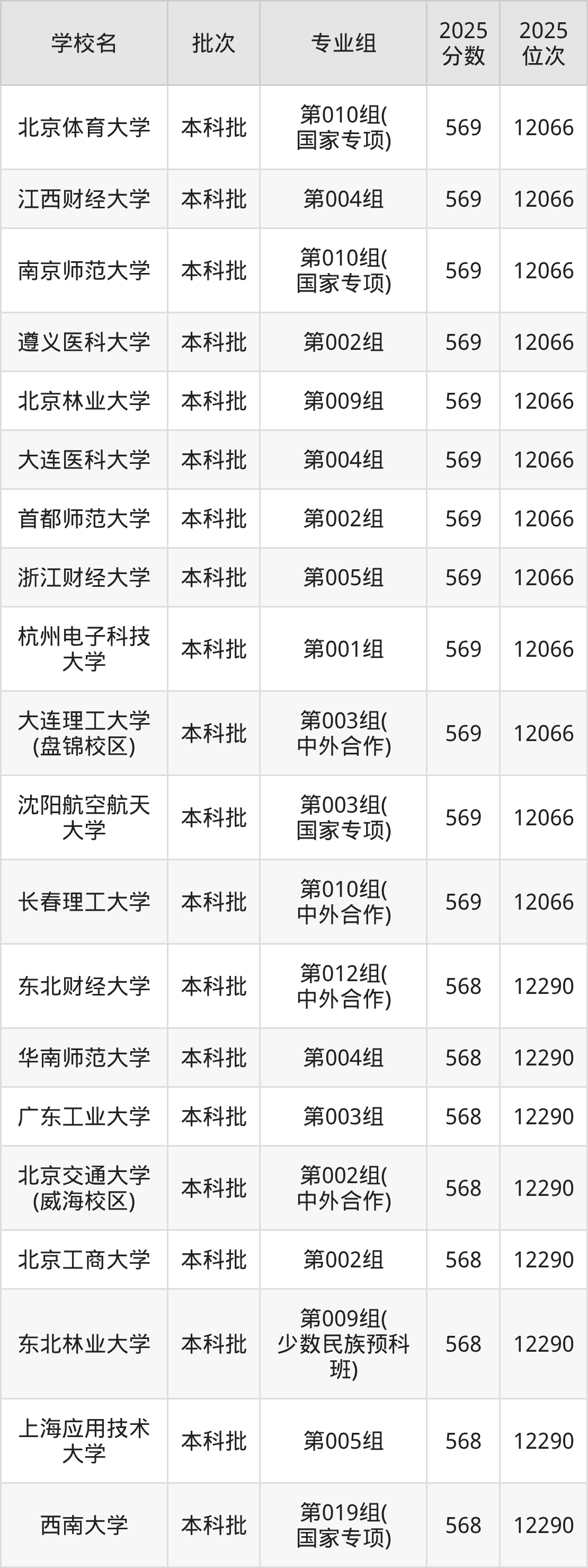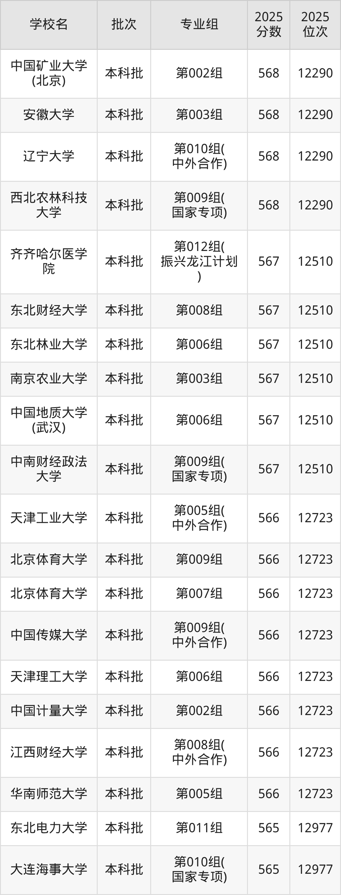 2025年黑龙江高考物理类566分(12511名~12723名)能上的大学有中国传媒大学第009组(中外合作)、北京体育大学第007组、北京体育大学第009组、天津工业大学第005组(中外合作)等。