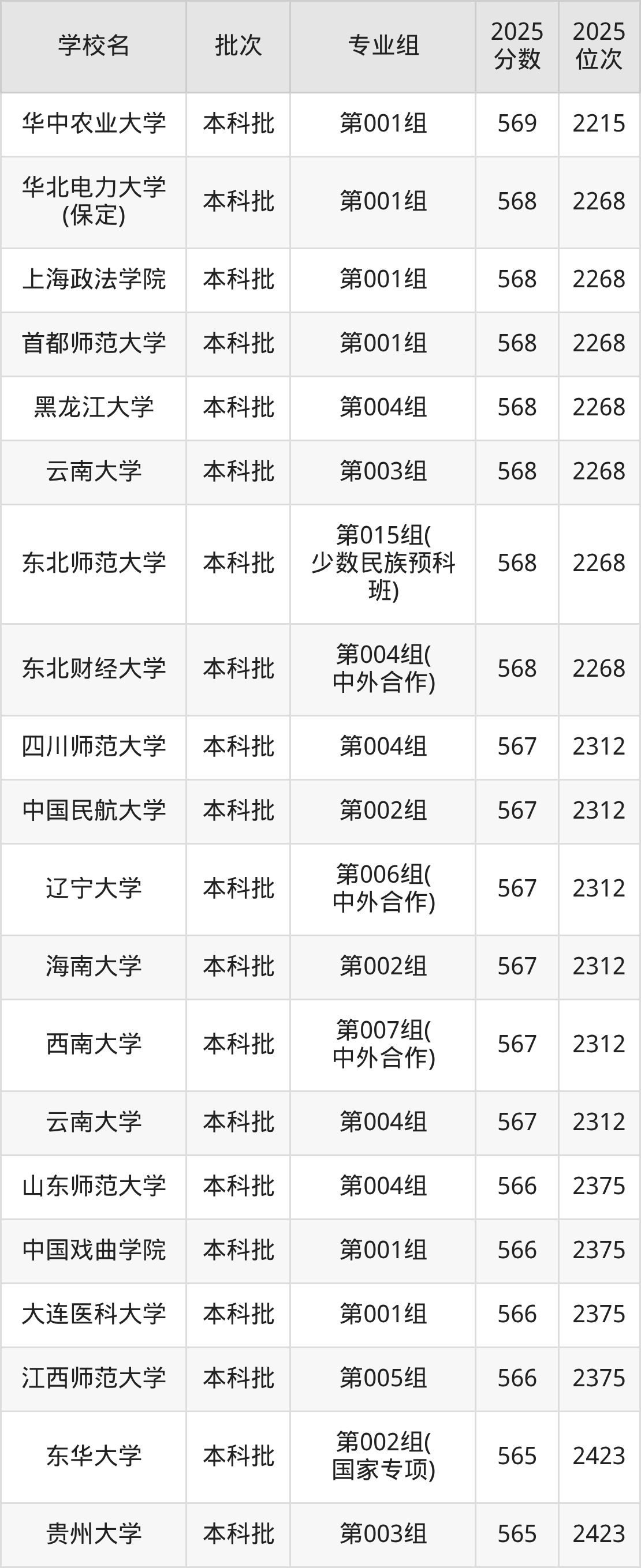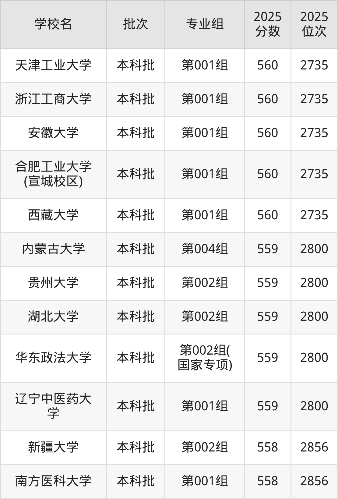 这些都是2026年高考历史类2313名~2375名考生可以报考的大学,更多学校名单如下表所示: