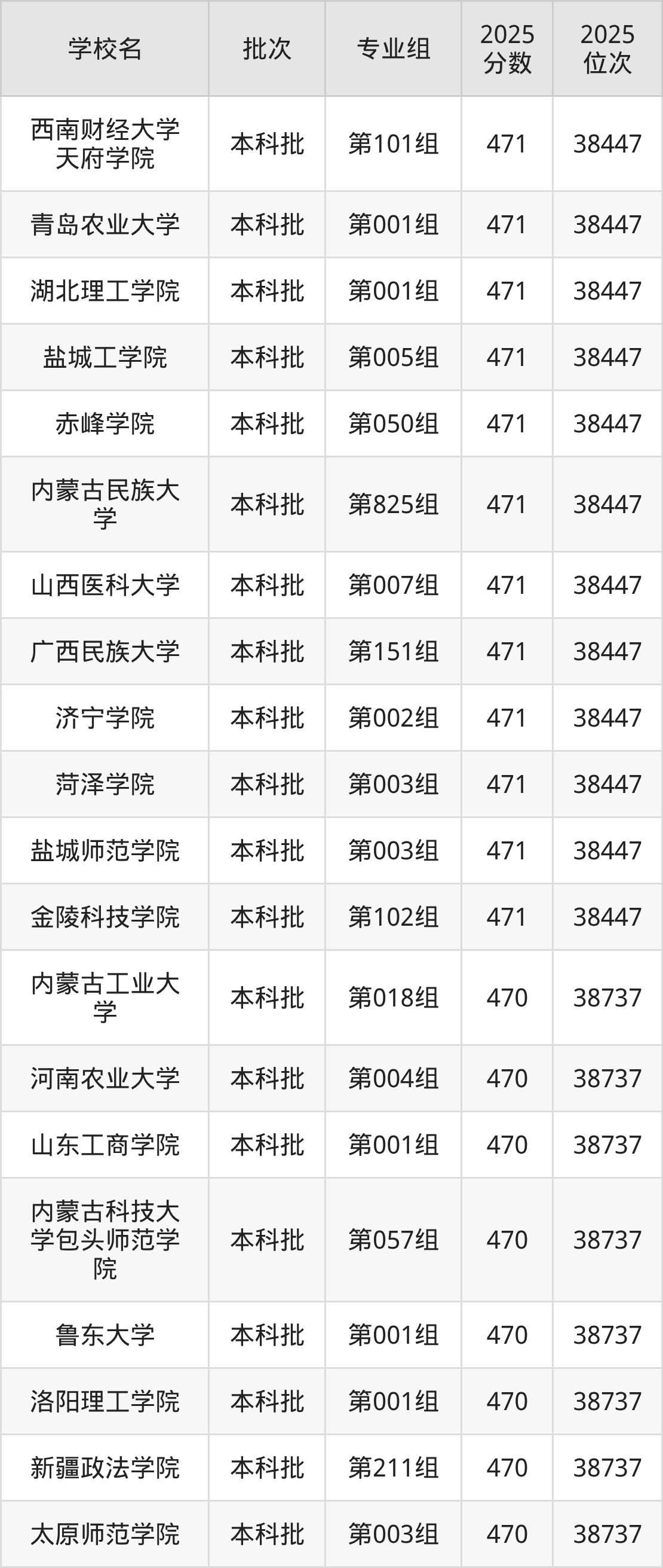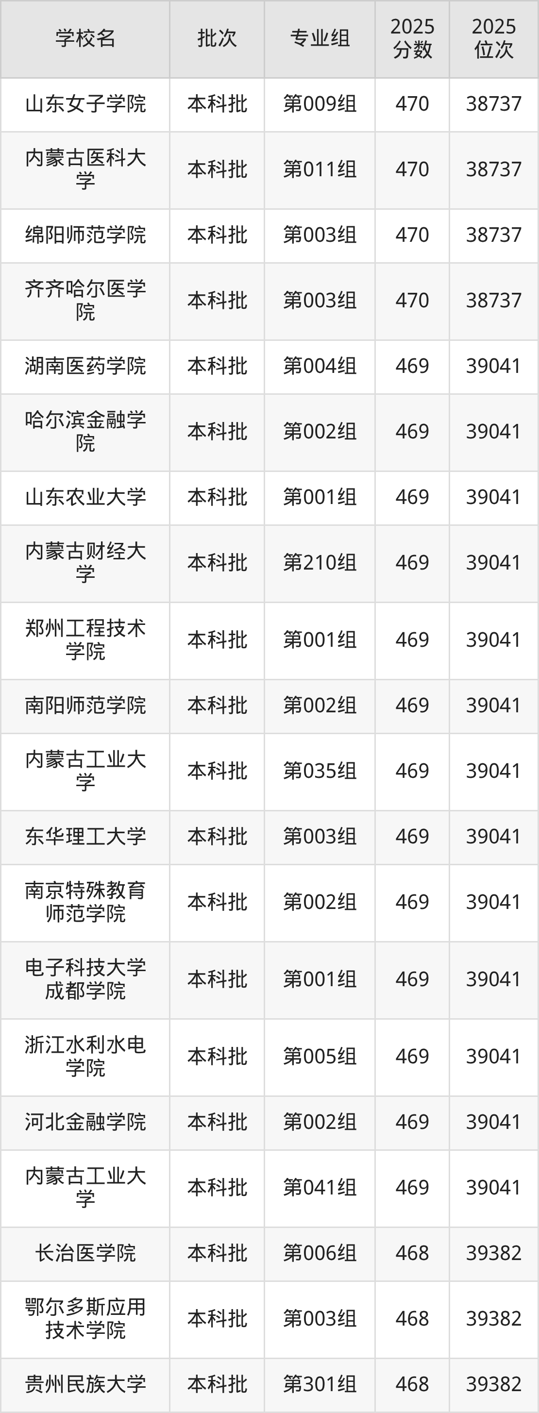 2025年内蒙古高考物理类469分(38738名~39041名)能上的大学有东华理工大学第003组、山东农业大学第001组、哈尔滨金融学院第002组、南京特殊教育师范学院第002组等。
